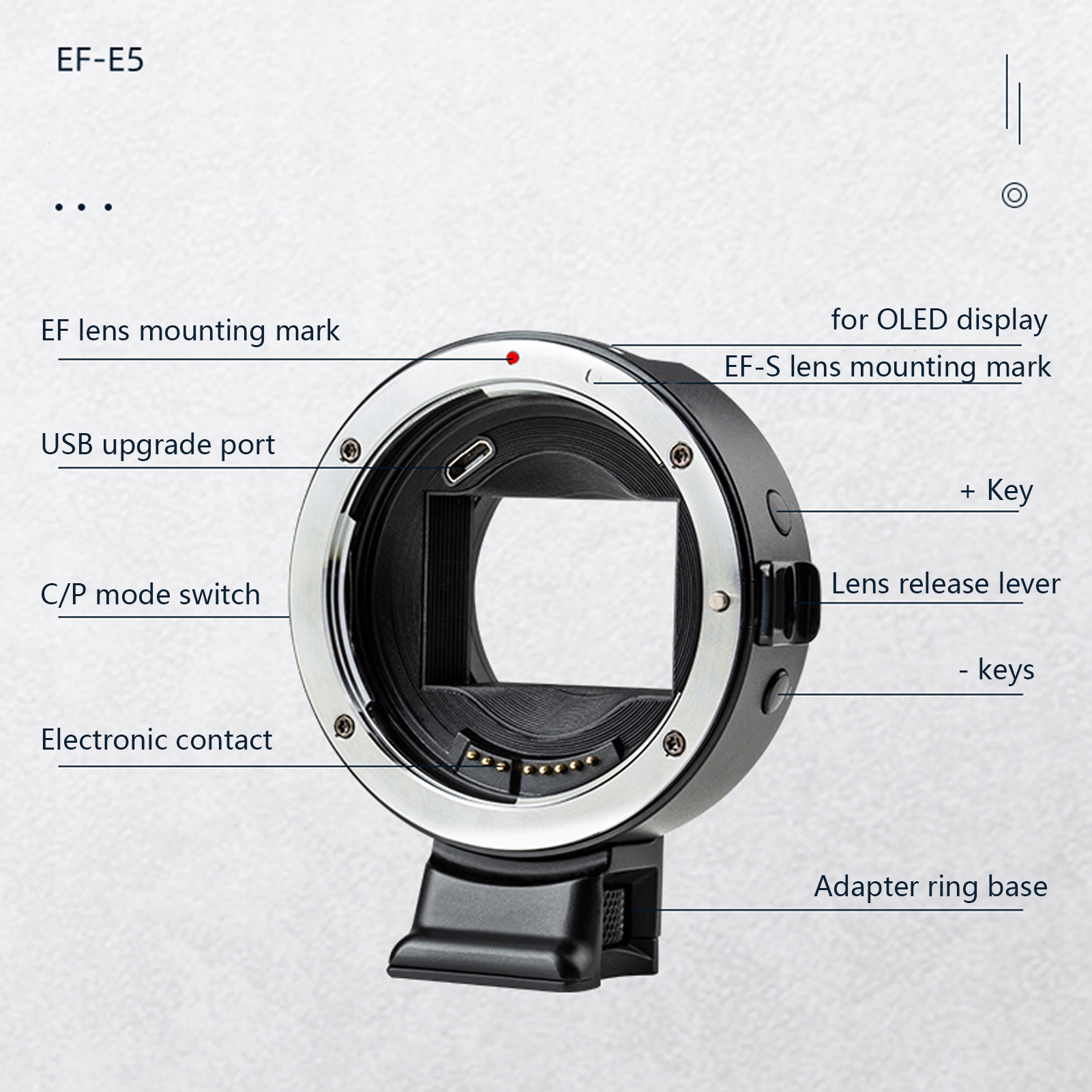 Функція:1. Електронний адаптер EF -E5 для кріплення об'єктива Bayonet NaNaCanon EF/EF - до корпусу камери NaNaSony Nex Bayonet.