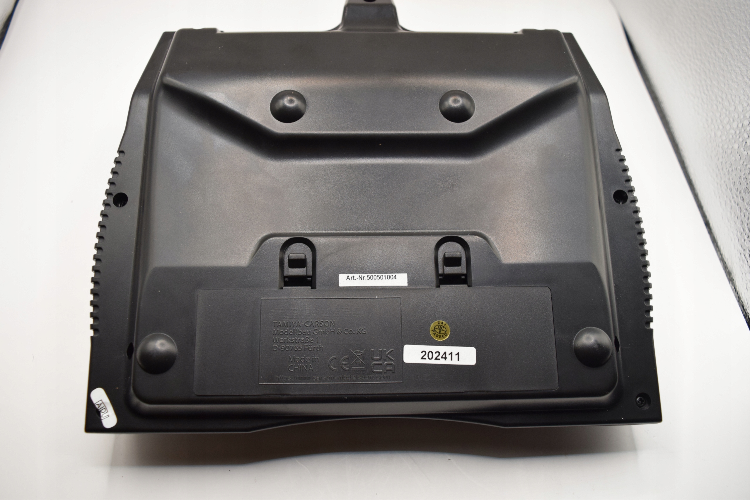 Reflex Stick Multi Pro LCD - професійна, сучасна та технічно високоякісна 14-канальна система дистанційного керування з 15 моделями пам’яті для універсального використання в багатьох автомобілях і кораблях із радіоуправлінням. 14 каналами можна керувати незалежно за допомогою 2 ручок управління та 10 перемикачів (4 кнопки / 4 ступінчасті перемикачі / 2 поворотних потенціометра), наприклад, такі функції, як світло/звук, гудок, тросова лебідка, кронштейни, водяний насос і пожежний монітор. 14-канальна система LCD REFLEX STICK Multi Pro повністю сумісна з пристроями MFC 01/03 і DMD від TAMIYA.