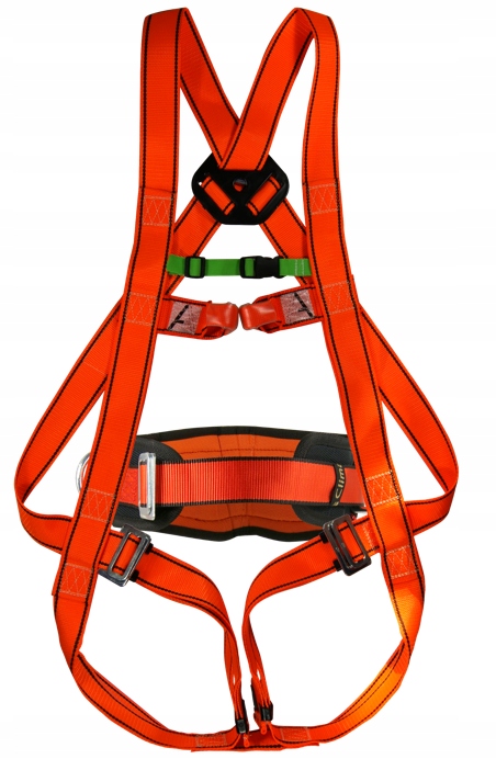 - Захищає від падіння з висоти під час роботи, наприклад, на стовпи, дерева та будівельні конструкції