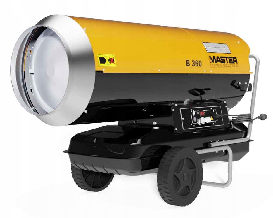 B360 нагрівач з 111 кВт та потік повітря 3 300 м3/год -це модель із серії головних обігрівачів високого тиску, оснащеного паливним насосом. Пристрій характеризується компактним корпусом та ергономічним дизайном, який полегшує використання та транспортування - особливо зручна ручка та великі, стабільні колеса. 105 -літер для палива забезпечує безперервність роботи протягом декількох годин - максимальне споживання палива становить 10,6 кг/год.