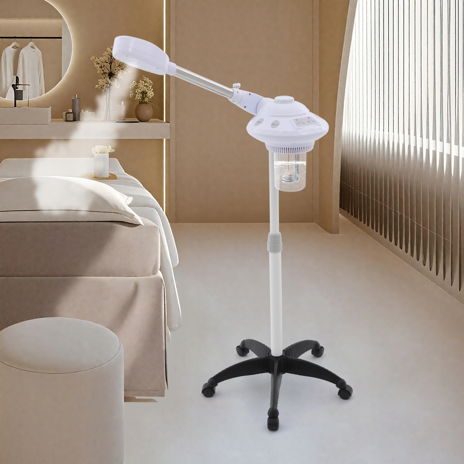 створені для виживання : виготовлені з високоякісної пластмаси, нержавіючої сталі, алюмінієвого сплаву та ретельно пофарбованого, він стійкий до іржі, подряпин, з міцним і довговічним, що забезпечує тривале життя. У той же час, озон відкриває пори і допомагає зволожувати суху шкіру, що дозволяє їм краще проникати в шкіру. Ви також можете додати трав'яні компреси, ефірні олії, пелюстки квітів тощо до контейнера з водою для проведення спеціальних процедур шкіри.