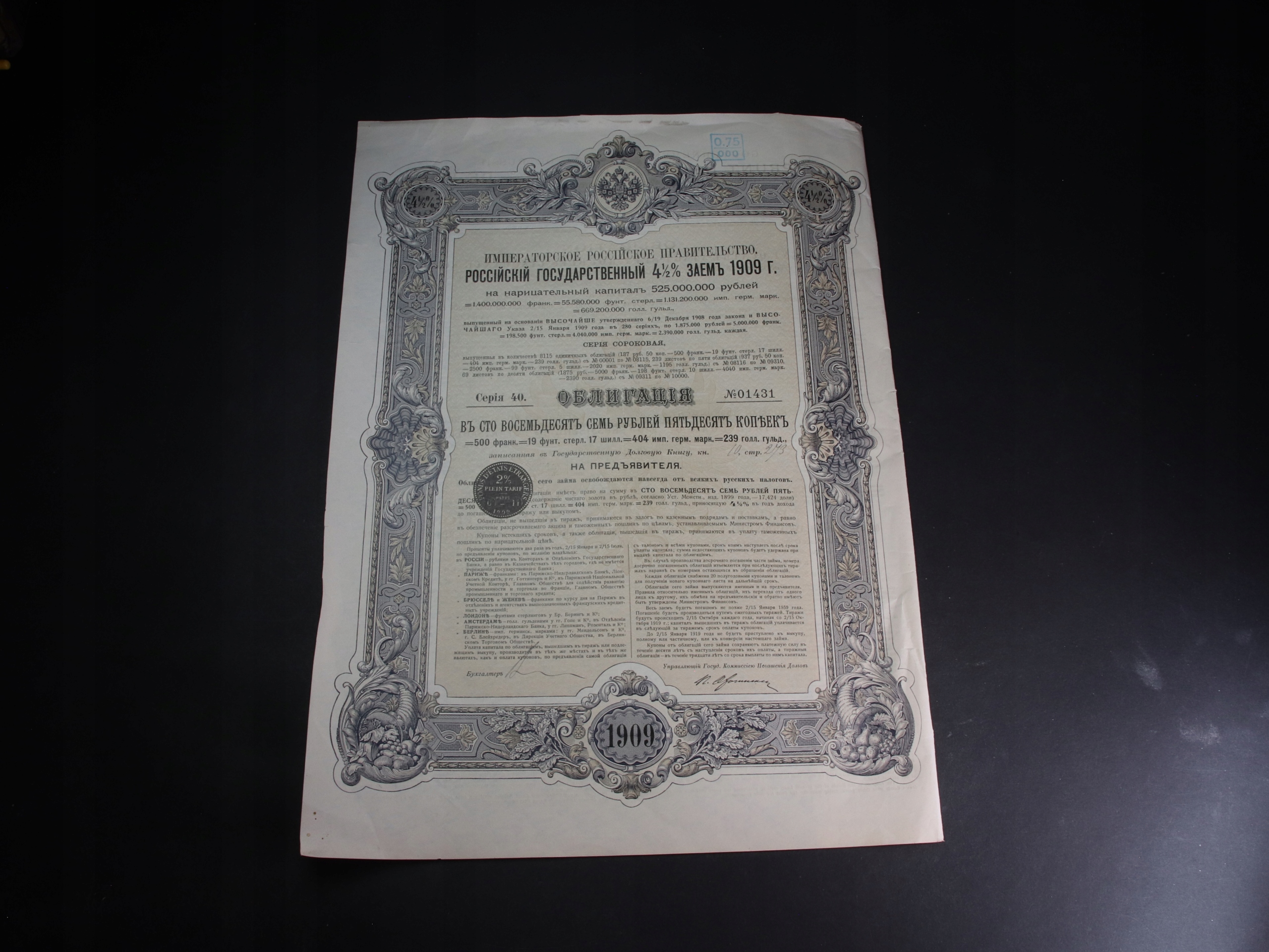 ОБЛІГАЦІЇ РОСІЇ 187,5 РУБЛІВ 1909 РОКУ