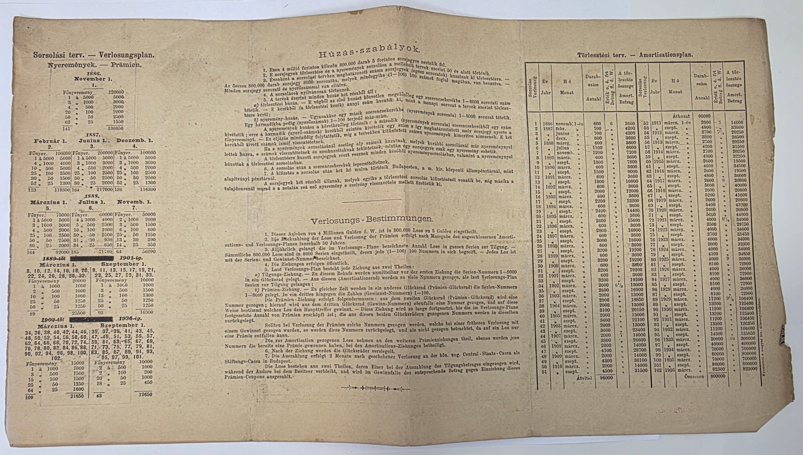 На реверсі докладний креслення та план амортизації (Verlosungsplan / Amortisationsplan), з описом правил і переліком дат і сум погашення.