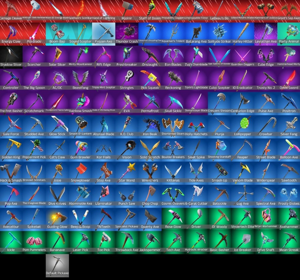 - Скіни епічні, унікальні, складні, og та легендарні зокрема: Black Knight, Ikonik, Travis, Star Wars, Mavel, Lebron, Omega, Bananek, Drift, The L, Mako, Psyho, Galaxy та багато інших...