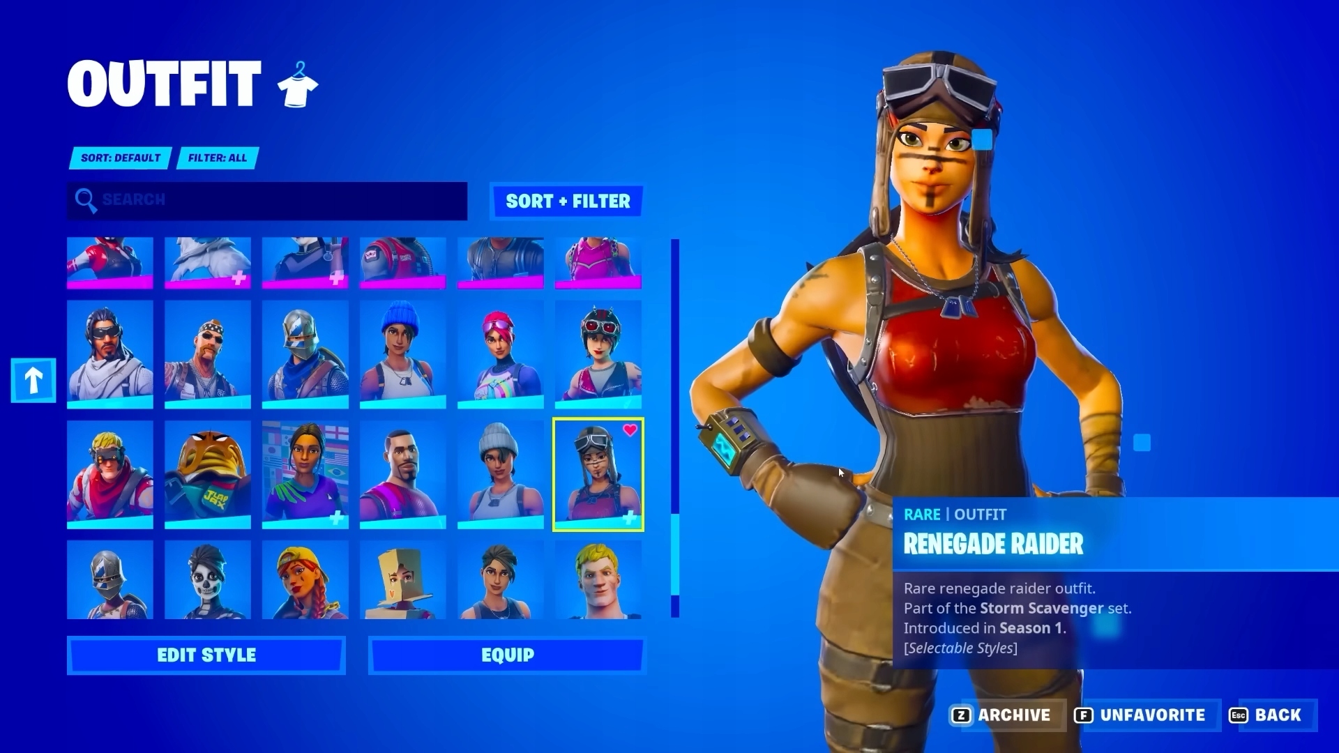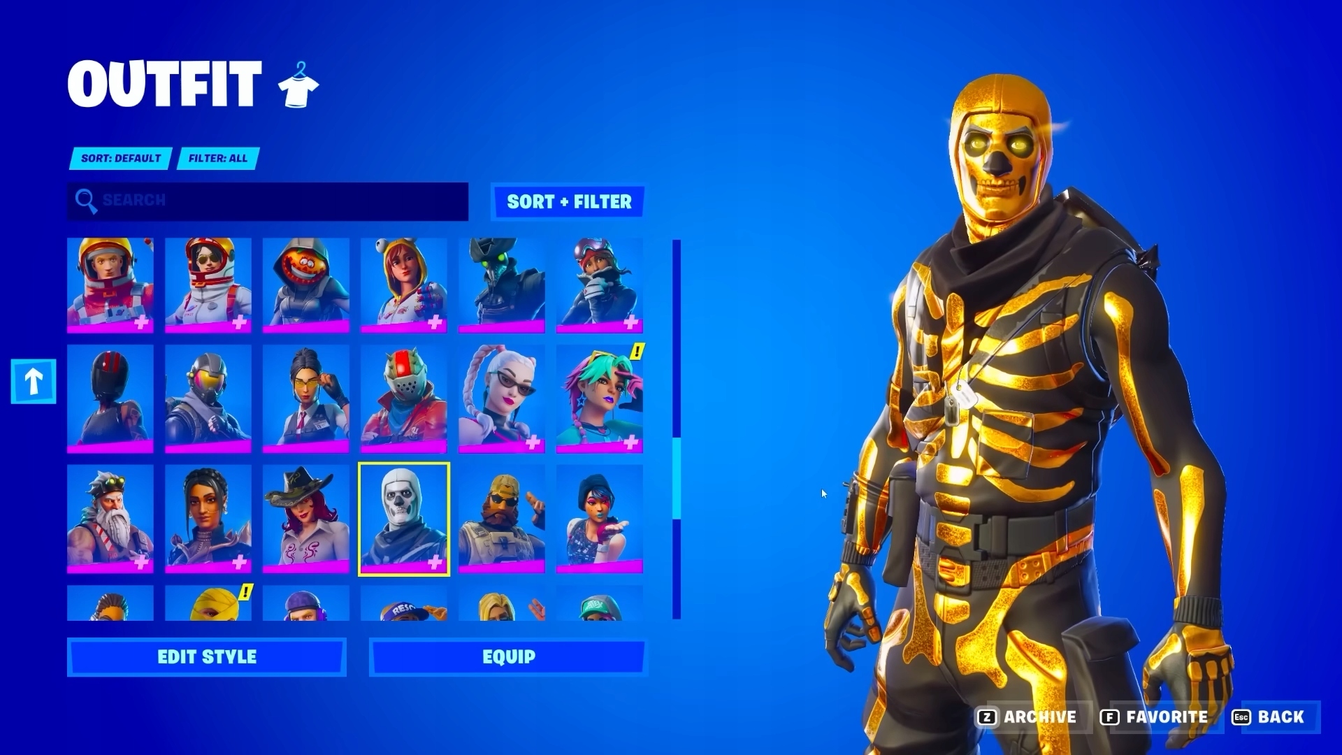 - скінів із 1 сезону до 22 ( Rege, Black, Skull, Ghoul Og, Mako, Travis, Ikonik, Galaxy, Midas...)