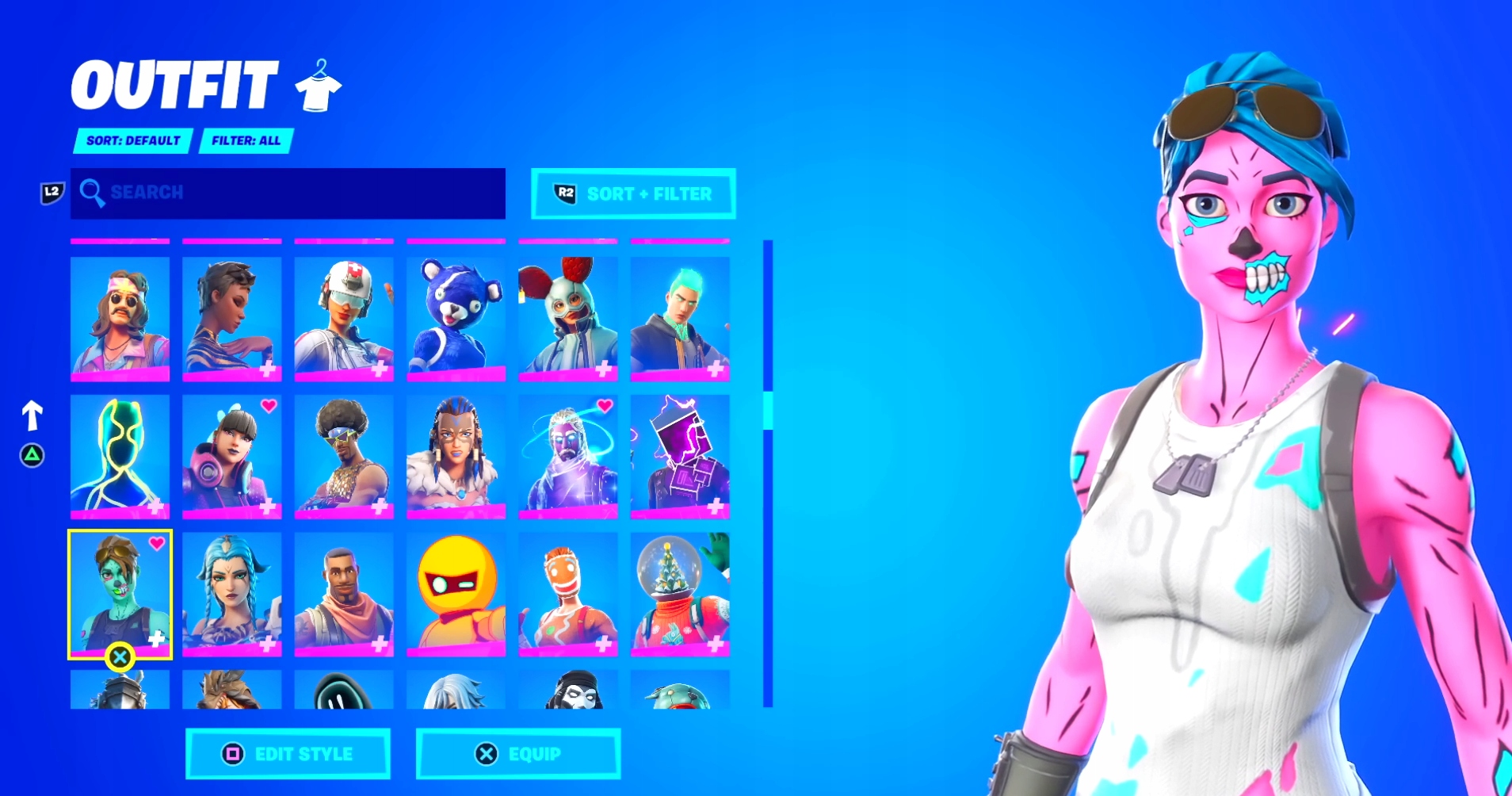 - Скіни з 1 сезону до 22(Rege, Black, Skull, Ghoul Og, Mako, Travis, Ikonik, Galaxy, Midas...)