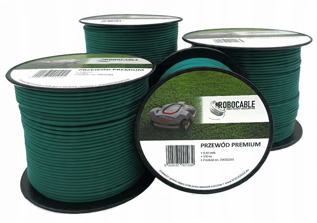 PREMIUM ROBOCABLE CABLE – це високоякісний обмежувальний кабель діаметром 3,4 мм, який працює з усіма роботами, доступними на ринку. Він присвячений обмеженню робочої зони косарок-роботів. Завдяки кабелю робот не губиться і виявляє робочу зону в установках з окружністю до 600 м (300 м для косарок NAC). Кабель має надійну ізоляцію PE (поліетилен) для захисту дроту від зовнішніх погодних умов. Кабель гнучкий, його також можна прокладати за допомогою машин.