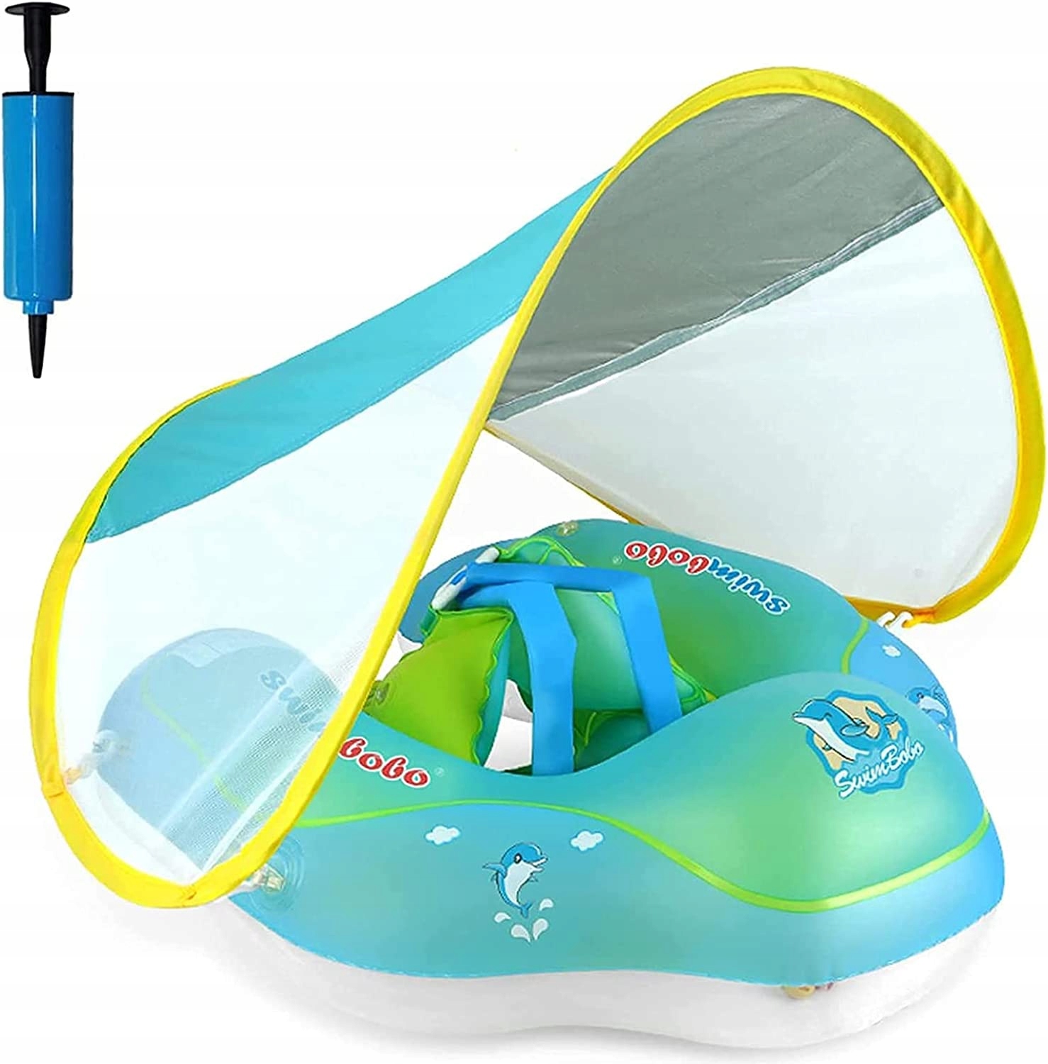 - ☑ Поліпшене плавальне коло для немовлят із знімною кришкою, сонцезахисний крем для запобігання перекидання дитини;