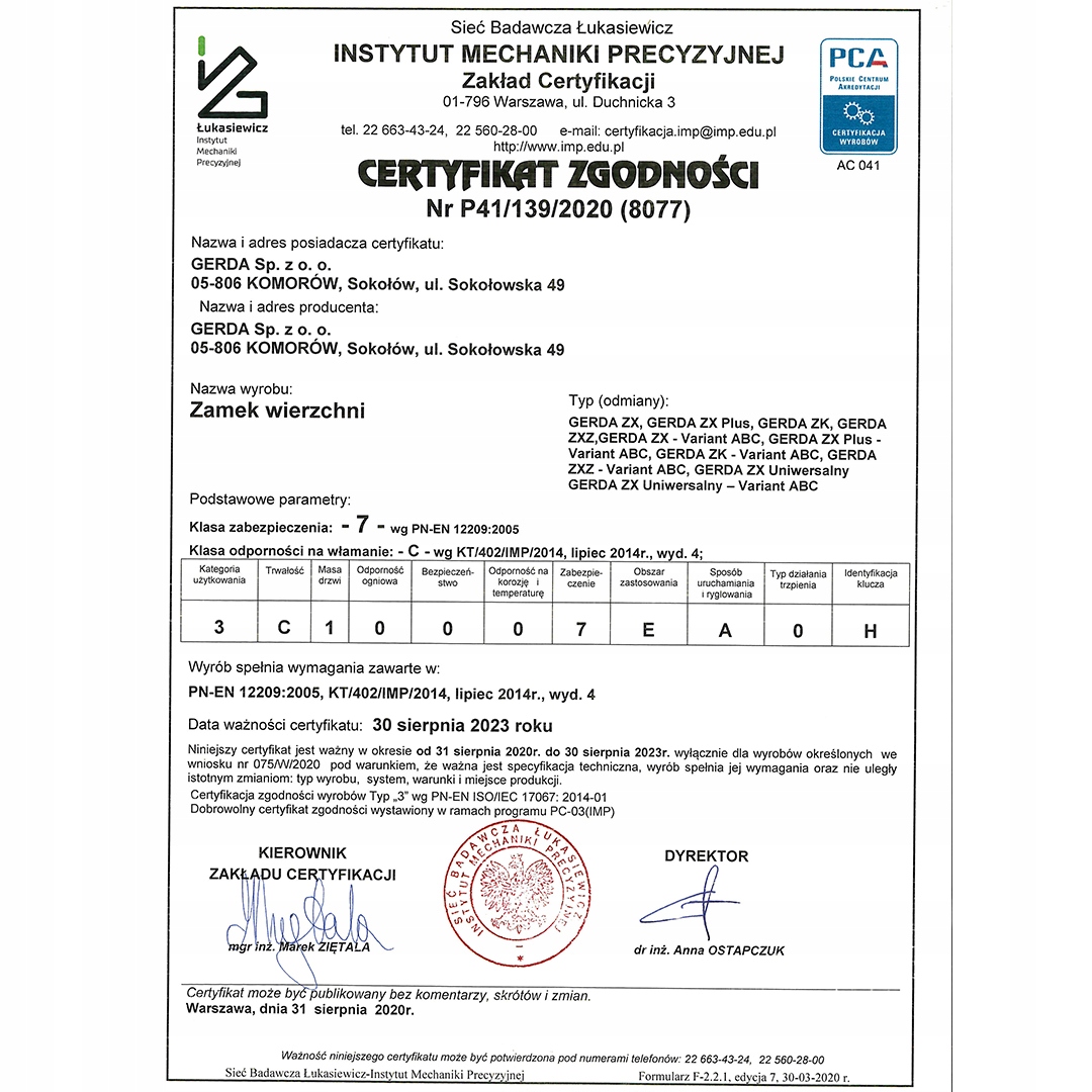 Протизламний поверхневий замок GERDA TYTAN ZX - це сімейство замків, які є результатом багаторічних досліджень і досвіду. Передові технології, які використовуються у виробництві цих замків, дозволили їм отримати найвищий сертифікат безпеки (вони мають сертифікат безпеки 7 класу згідно PN-EN12209). Замки TYTAN ZX, які протягом багатьох років не перемагали зломщики, встановлюють найвищі стандарти в галузі безпеки. Протизламний поверхневий замок, перевірений мільйонами екземплярів, є синонімом надійності та довговічності.