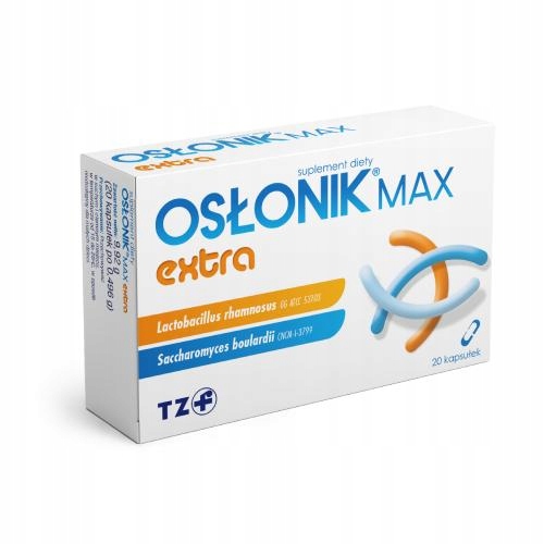 Osłonik max екстра містить пробіотики: ліофілізовані дріжджові культури Saccharomyces boulardii DBVPG 6763 та мікрокапсульовані молочнокислі бактерії Lactobacillus rhamnosus GG ATCC 53103.
