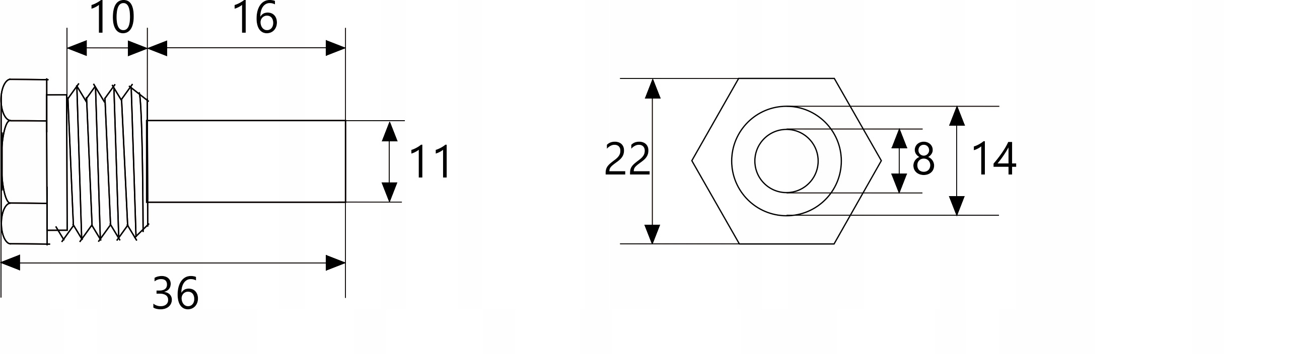 - Довжина з різьбою: 36 мм
