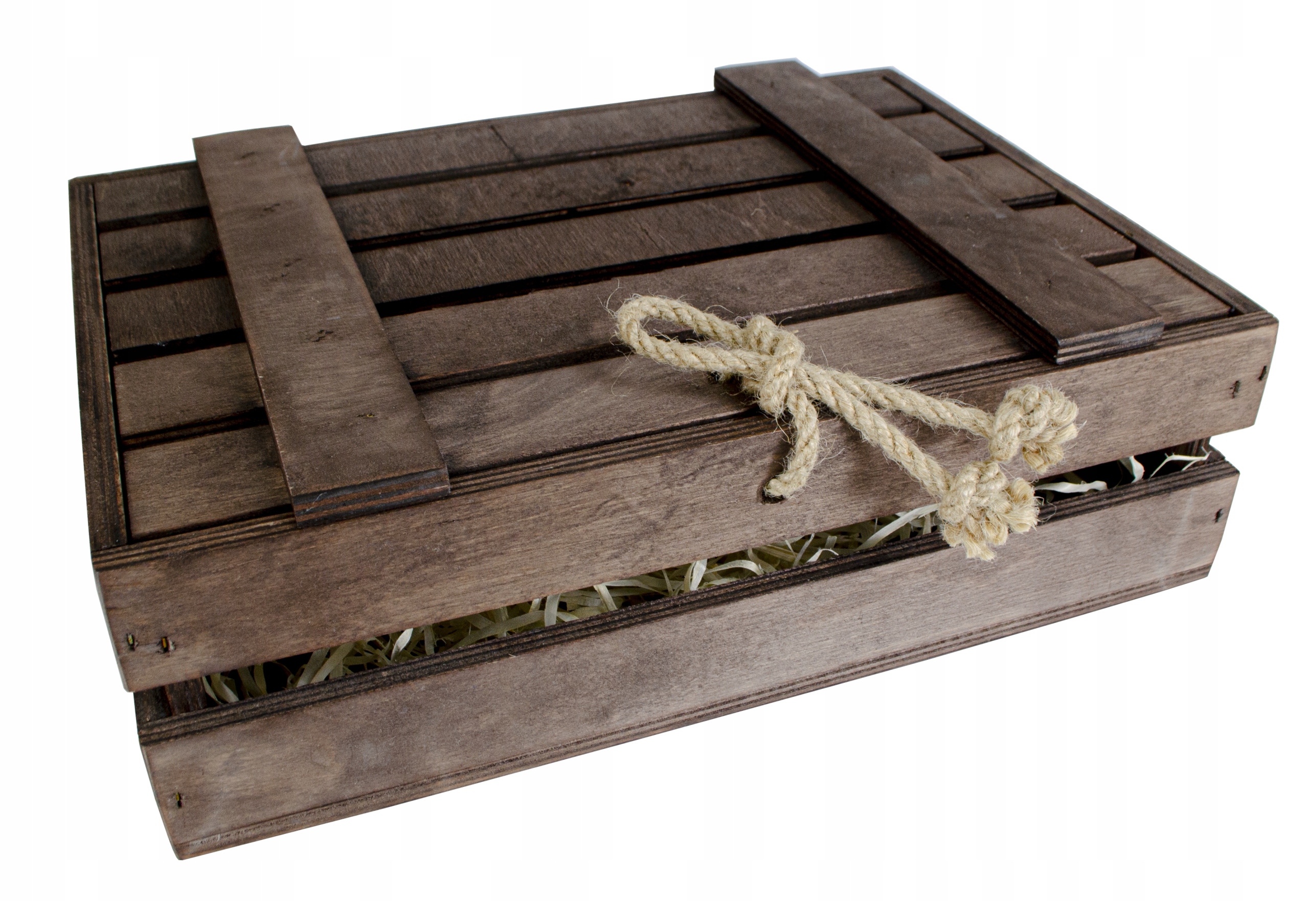 Дерев'яна скринька має джутову нитку, яку можна зав'язати, щоб коробка не відкривалася сама.