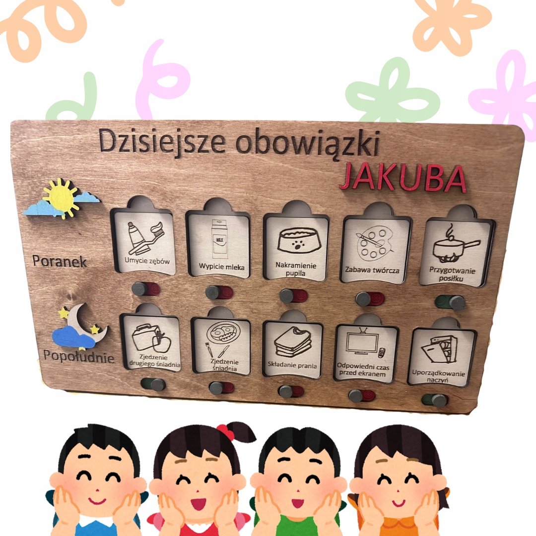 OBOWIAZKI organizer dla dzieci DZIEŃ DZIECKA PREZENT DREWNIANY UPOMINEK