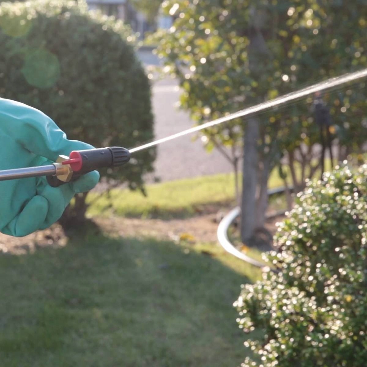 - Шланг довжиною 1,7 м дозволяє вільно працювати, коли розпилювач стоїть на землі