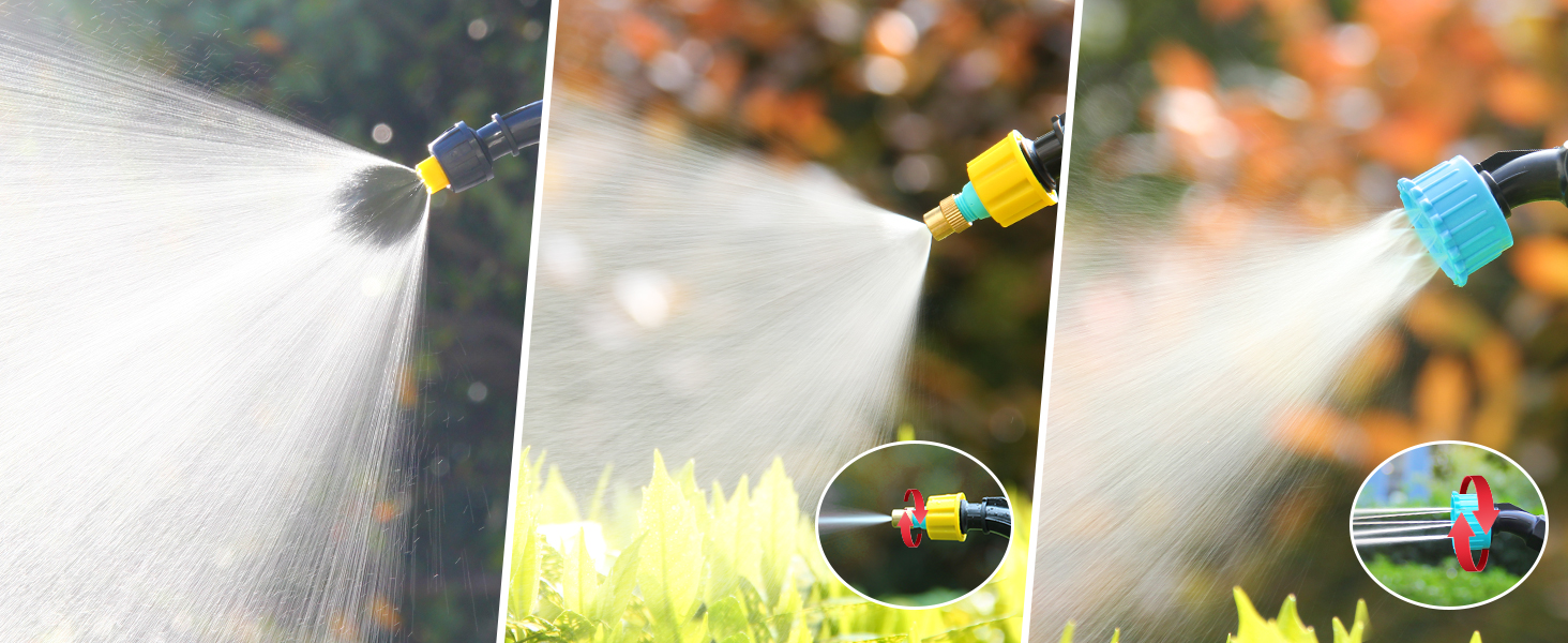 - Легке перемикання між м’яким або прямим потоком для ніжних рослин або великих газони.