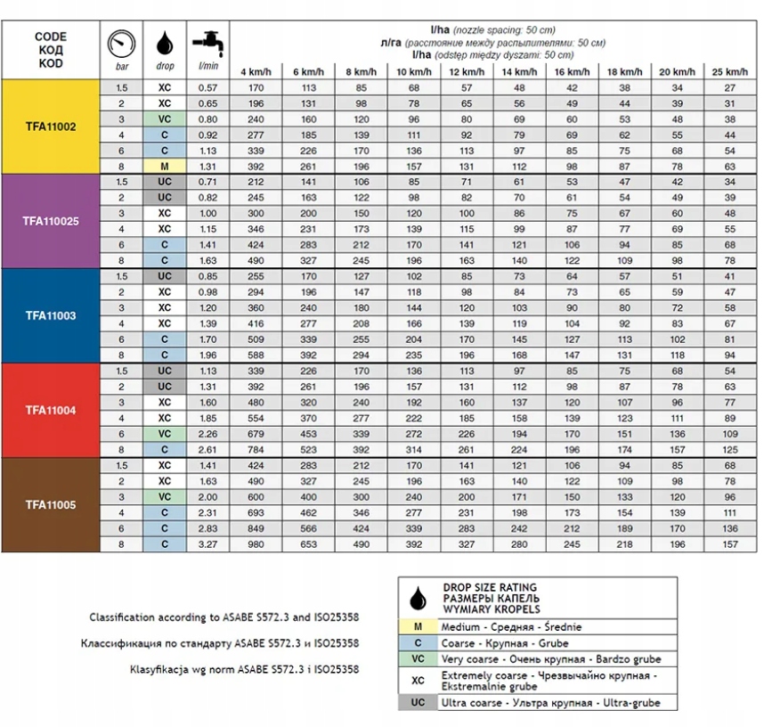 Кольори та продуктивність відповідно до стандарту ISO для польових обприскувачів