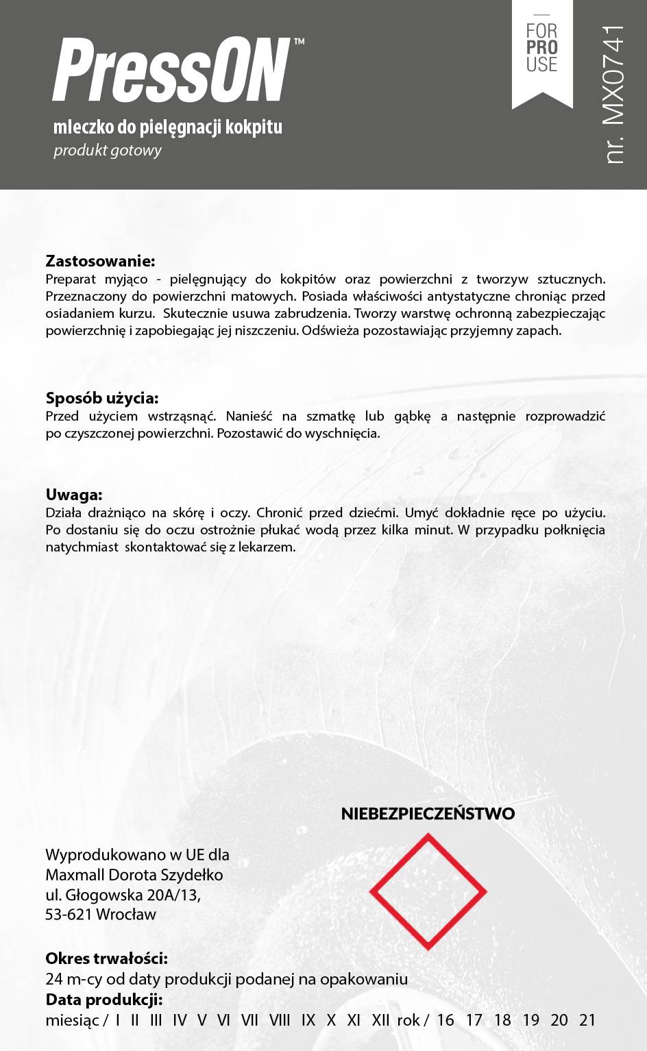Молочко призначене для очищення та догляду за кабінами та пластиком.