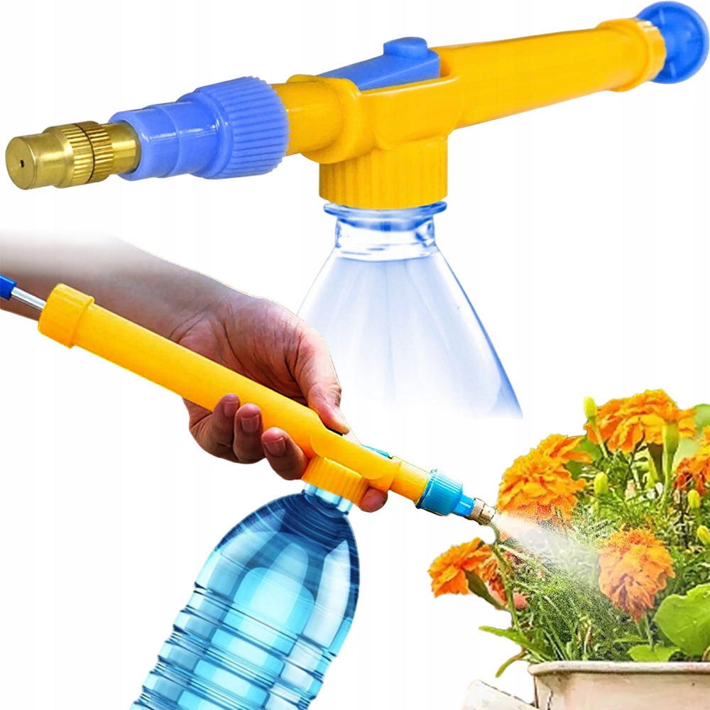 Ручний розпилювач під тиском з регульованою насадкою для універсальної пляшки. За кілька секунд він перетворює пляшку (наприклад, мінеральної води) на розпилювач. Ідеально підходить для садівництва, домашніх і майстерень, гаражів і сараїв. Можна використовувати для очищення та дезінфекції, а також для обприскування та проведення обробок захисту рослин. Сумісний із більшістю ПЕТ-пляшок різної ємності.