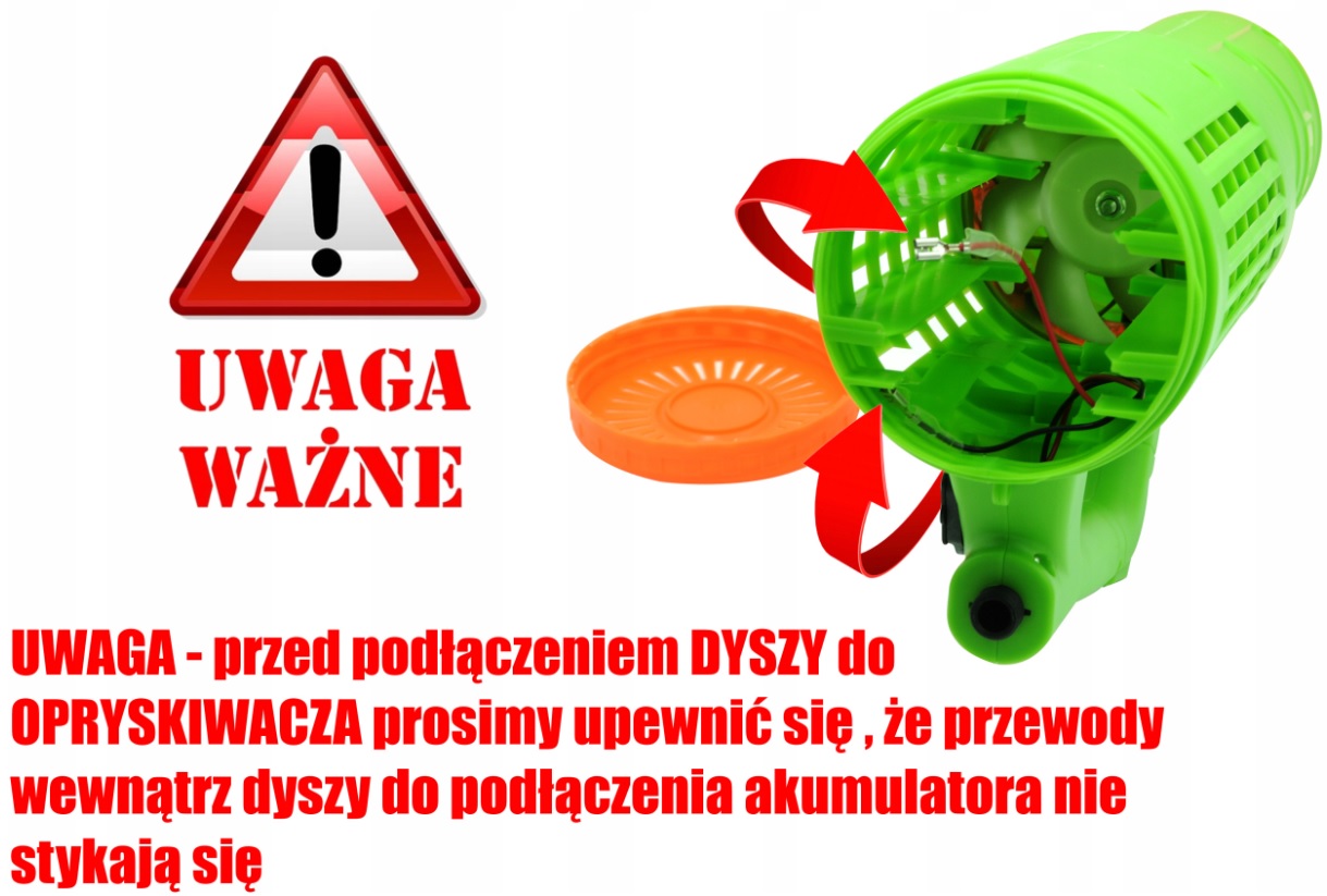 Роботу ТУРБОФОРСУНКИ можна порівняти з роботою розпилювача горіння. УВАГА - перед підключенням ФОРСУНКИ до ОБПРИСКУВАЧА переконайтеся, що дроти всередині насадки для підключення акумулятора не стикаються!!!