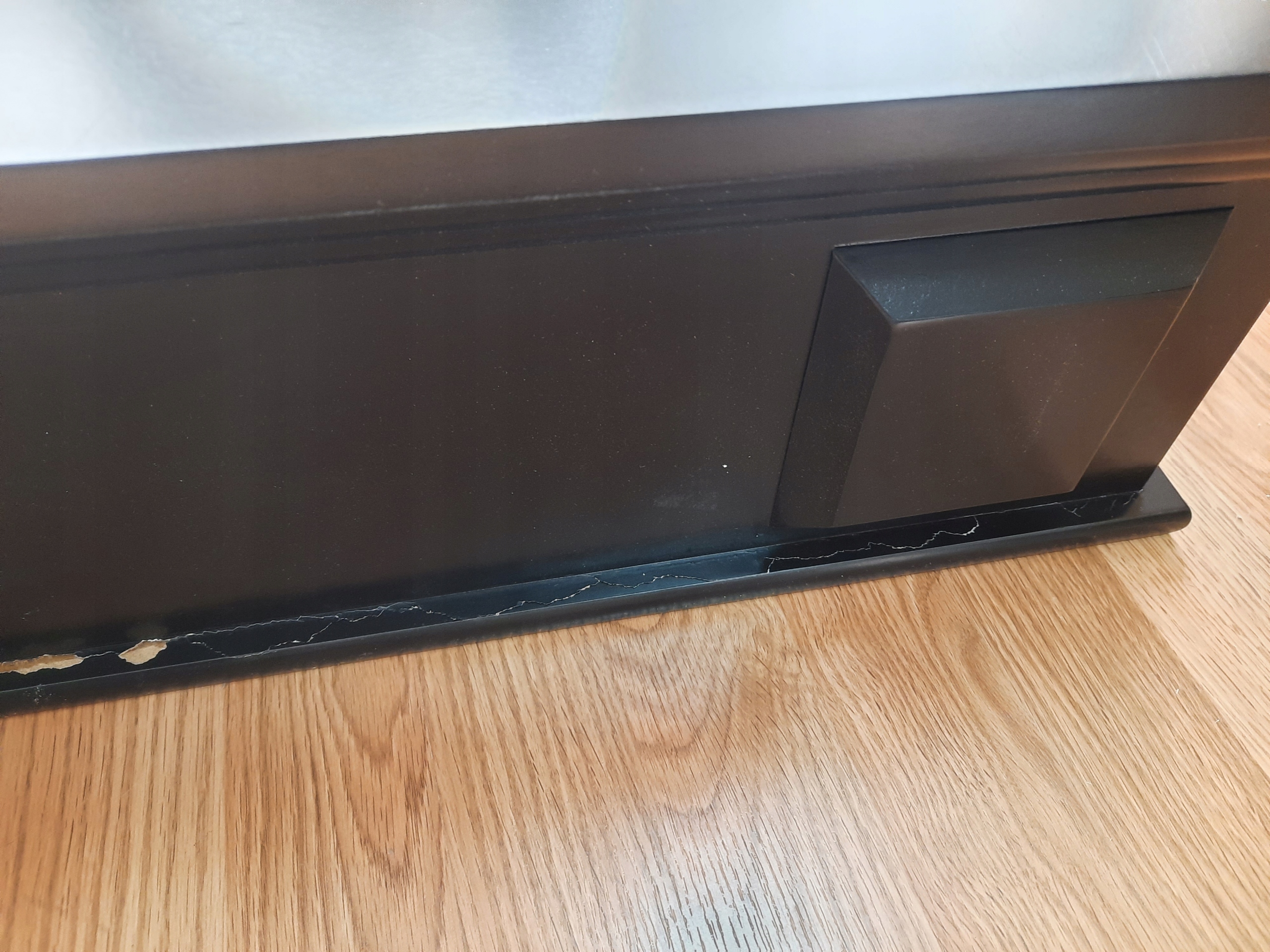 Виставковий продукт, повний, ЗВЕРНІТЬ УВАГУ, на кількох елементах є вм’ятини, відколи та подряпини. Верхній елемент проклеєний продавцем, є сліди тріщин та втрати шпону. Фактичний стан показано на фотографіях нижче