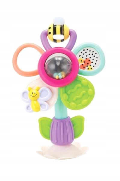 Різнобарвна квітка пропонує багато різноманітних ігор для малюків. Кожна пелюстка, що обертається, містить сюрприз! Іграшка оснащена присоскою для кріплення до твердих поверхонь.