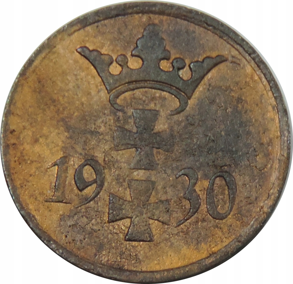ОБРАТНА МОНЕТА - 1 пфеніг 1930 - ВІЛЬНЕ МІСТО ГДАНСЬК - ОРИГІНАЛ -PK2