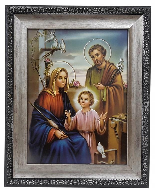 OBRAZ W SREBRNEJ RAMIE 42X52 ŚWIĘTA RODZINA JEZUS
