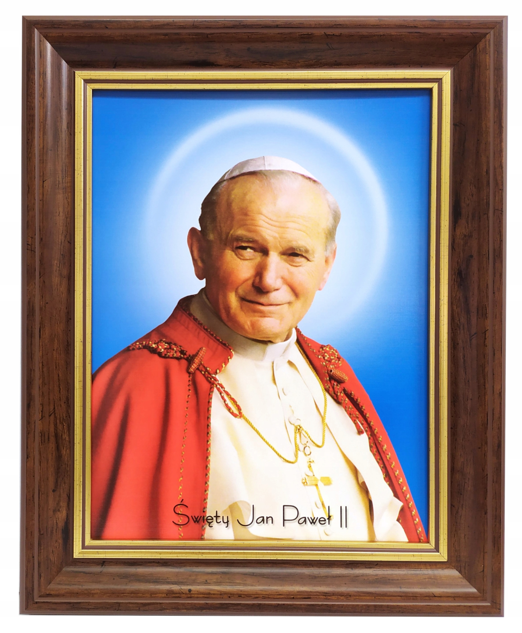 OBRAZ ŚW. PAPIEŻ JAN PAWEŁ II DREWNIANA RAMA 40X50