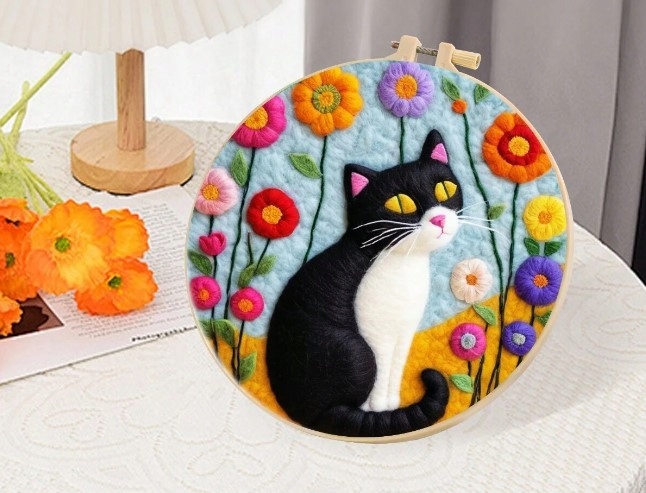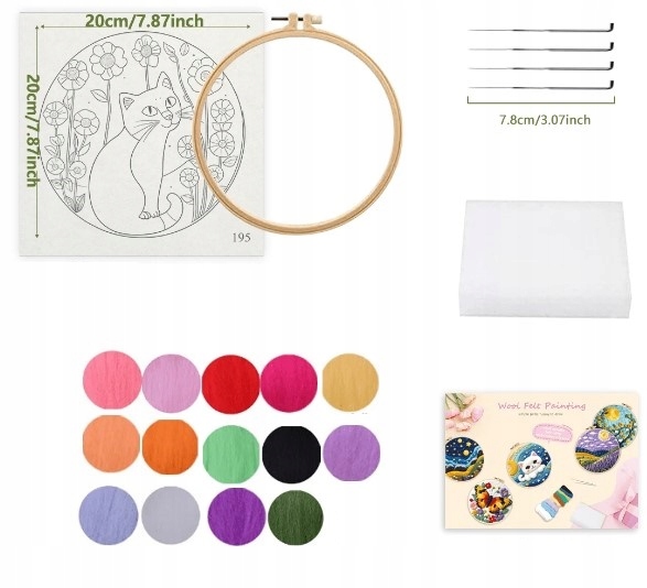 Фетрова картинка (візерунок кошеня) - повний набір для створення унікальної роботи з фетру. Він містить усе, що потрібно, щоб зробити гарний орнамент, ідеальний для повіслення на стіну або як елемент для шиття на сумці або одязі. Ідеально підходить як для початківців, так і для вдосконалених ремесел. > Tamborek розміром 22,5х23 см для обрамлення готової роботи,