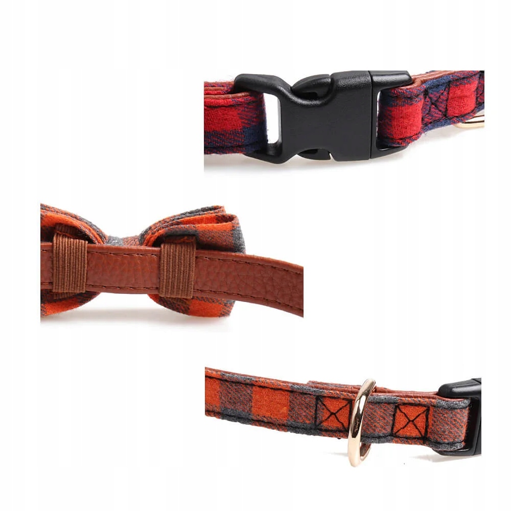 Нашийник виготовлено звисокоякісної PU шкіриі картатого матеріалу.