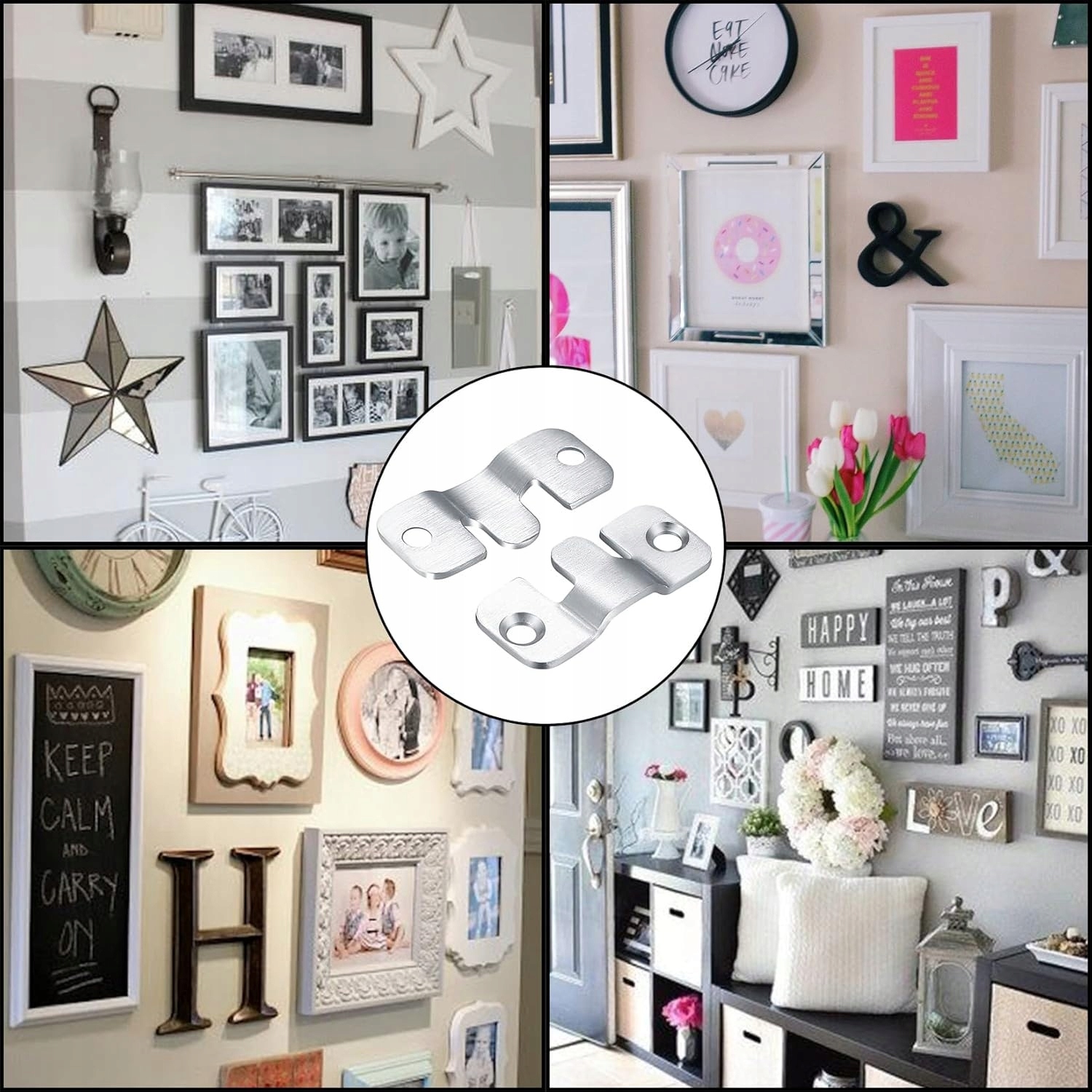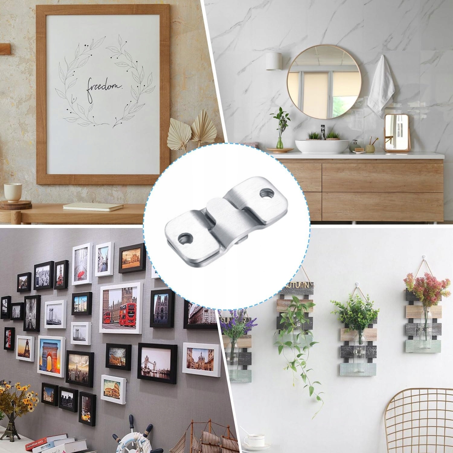 Тонка конструкція з заглибленими та симетричними отворами гвинта дозволяє швидко та проста установка. Просто прикріпіть затискач до стіни довгими болтами, з опуклістю зверненою вгору, а потім прикріпіть ще один затискач до меблів короткими гвинтами, з опуклістю, спрямованою вниз і, нарешті, прикріпіть. П'єси, виставкові картини, плакати, підголівники, годинники, дзеркала та багато інших. Вони додадуть елегантності вашому дому та офісу.