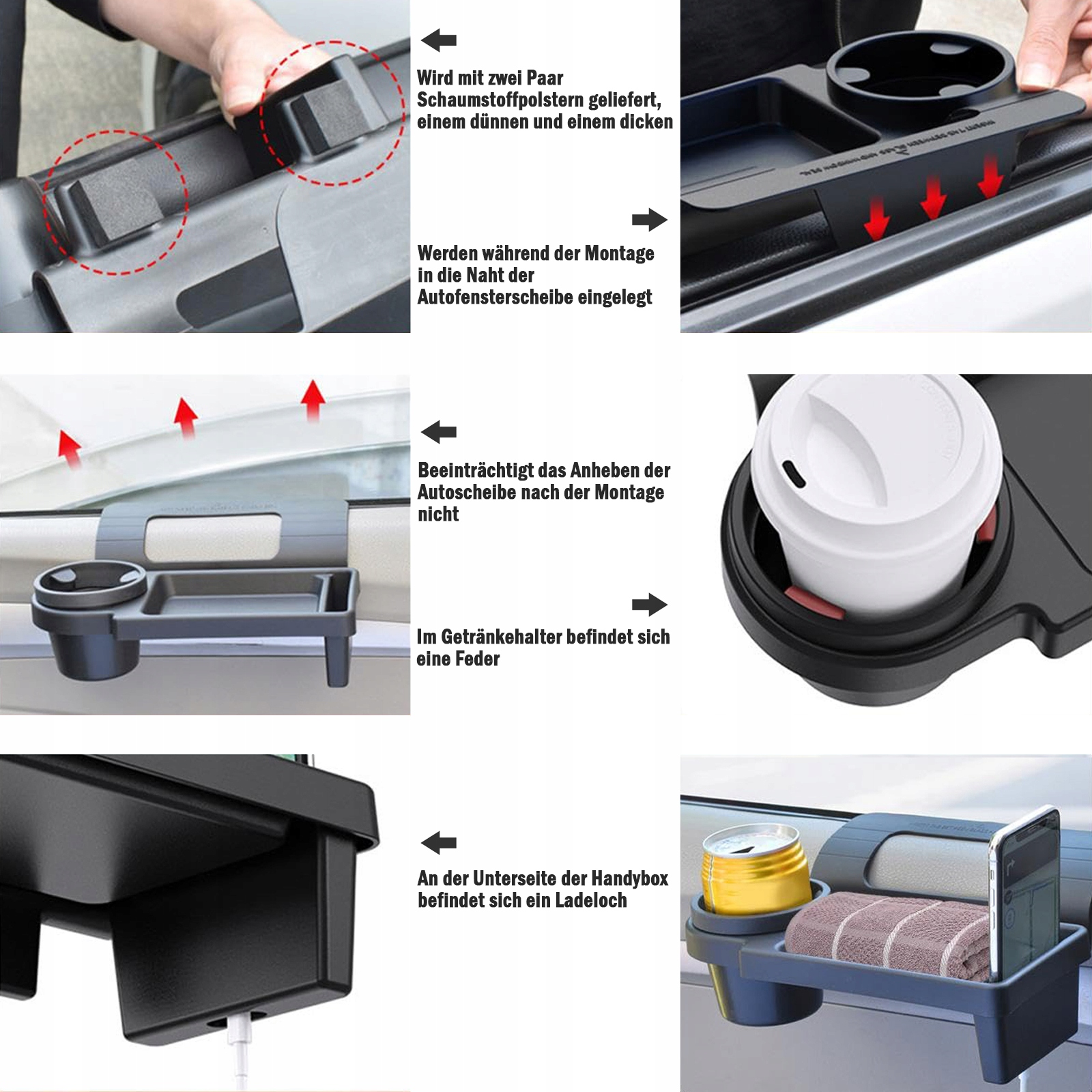 Ідеально підходить для телефону, чашки, ключів тощо. Він не вимагає буріння або склеювання, просто повісьте його на внутрішній стороні дверей автомобіля, щоб можна було використовувати його стабільним. Внутрішній дизайн забезпечує безпеку ваших предметів навіть на бурхливих дорогах.