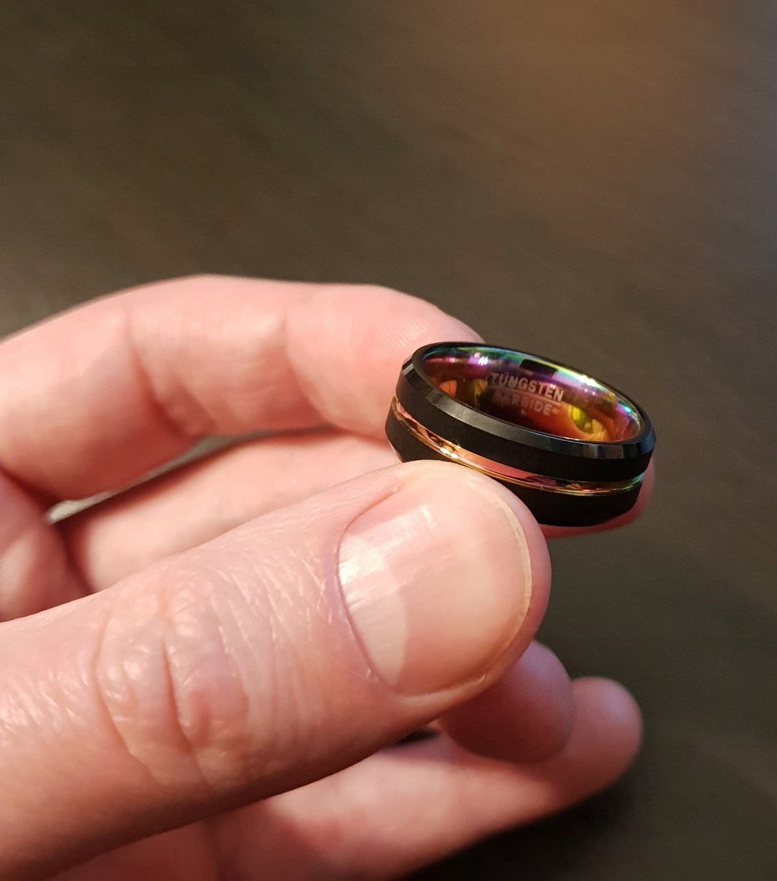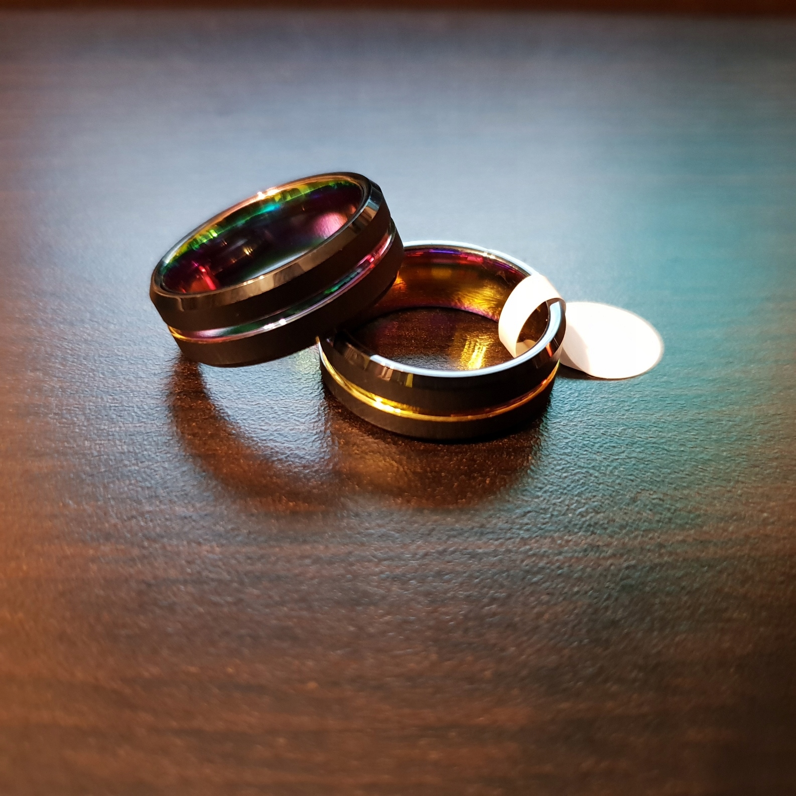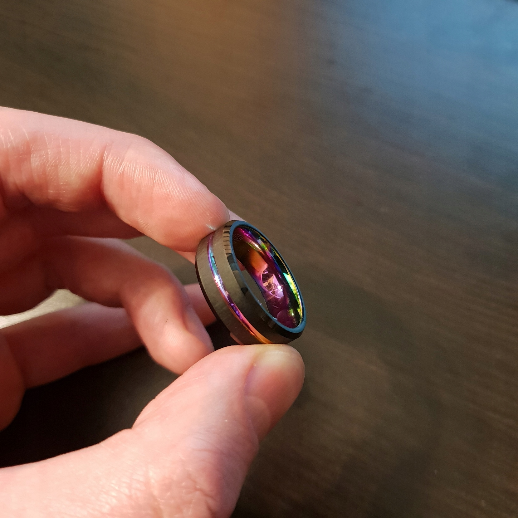 Чудова обручка чорного кольору з райдужним покриттям і матовим покриттям