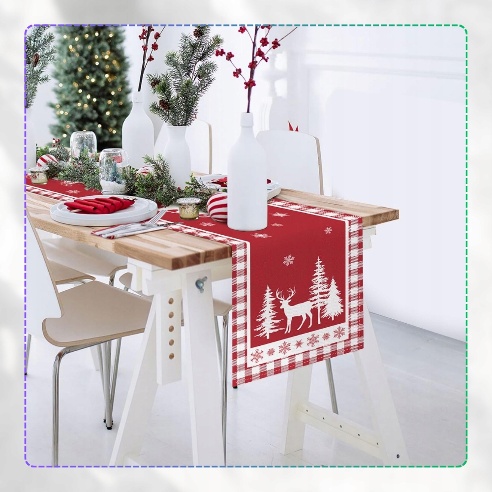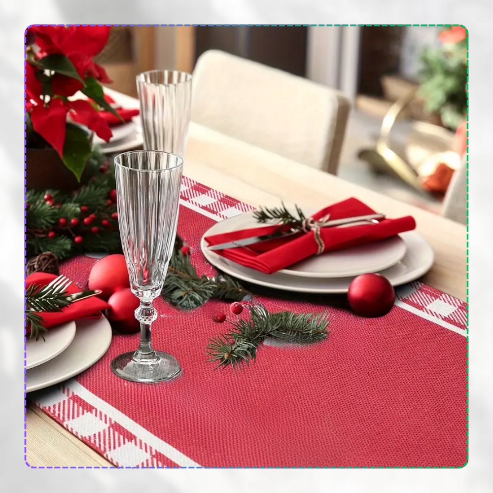 Obrus czerwony ozdobny bieżnik na stół świąteczny Boże Narodzenie 183 cm