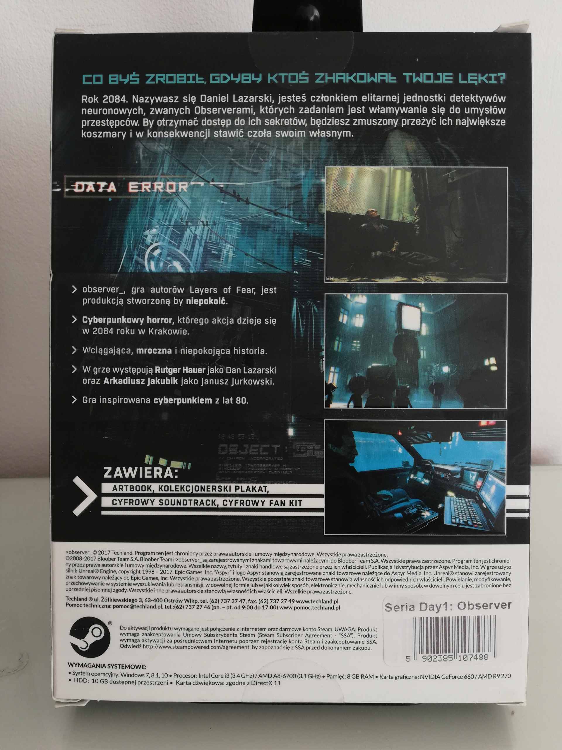 Психологічна гра жахів від першої особи від польської студії Bloober Team, відомої головним чином своєю продукцією під назвою Layers of Fear. Дія Observer відбувається у всесвіті кіберпанку в Кракові в 2084 році. "