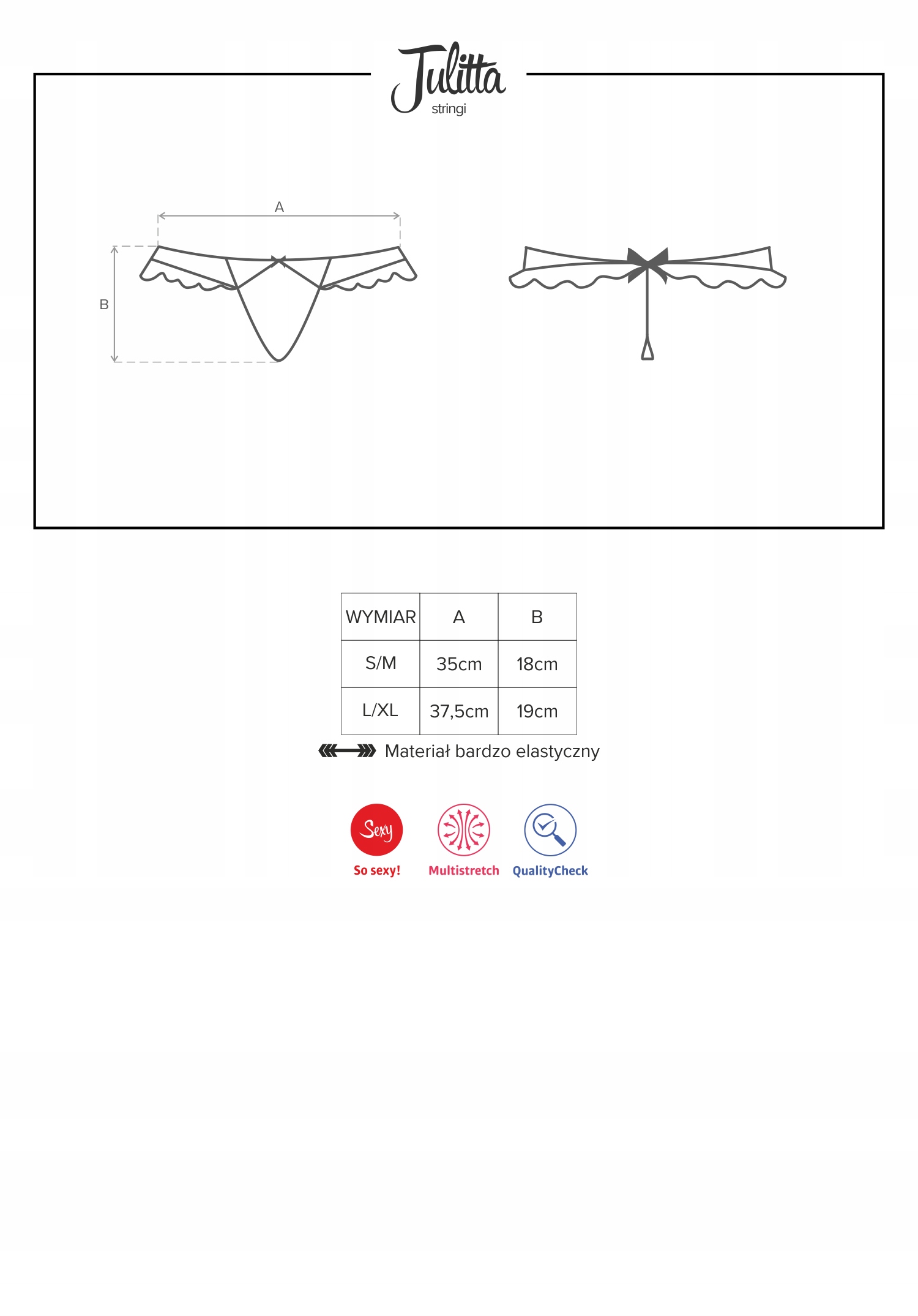 Досконалість у кожній деталі? Познайомтеся зі стрінгами Julitta! Привертайте увагу до феноменально відкритих вигинів і кокетливих прикрас. Коли прийде нав’язлива коробка з новою білизною, ви можете бути впевнені, що це буде ідеальний день з ідеальним кінцем!