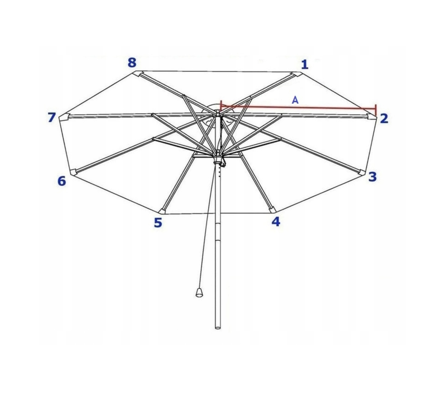 • Діаметр парасолу: 300 см