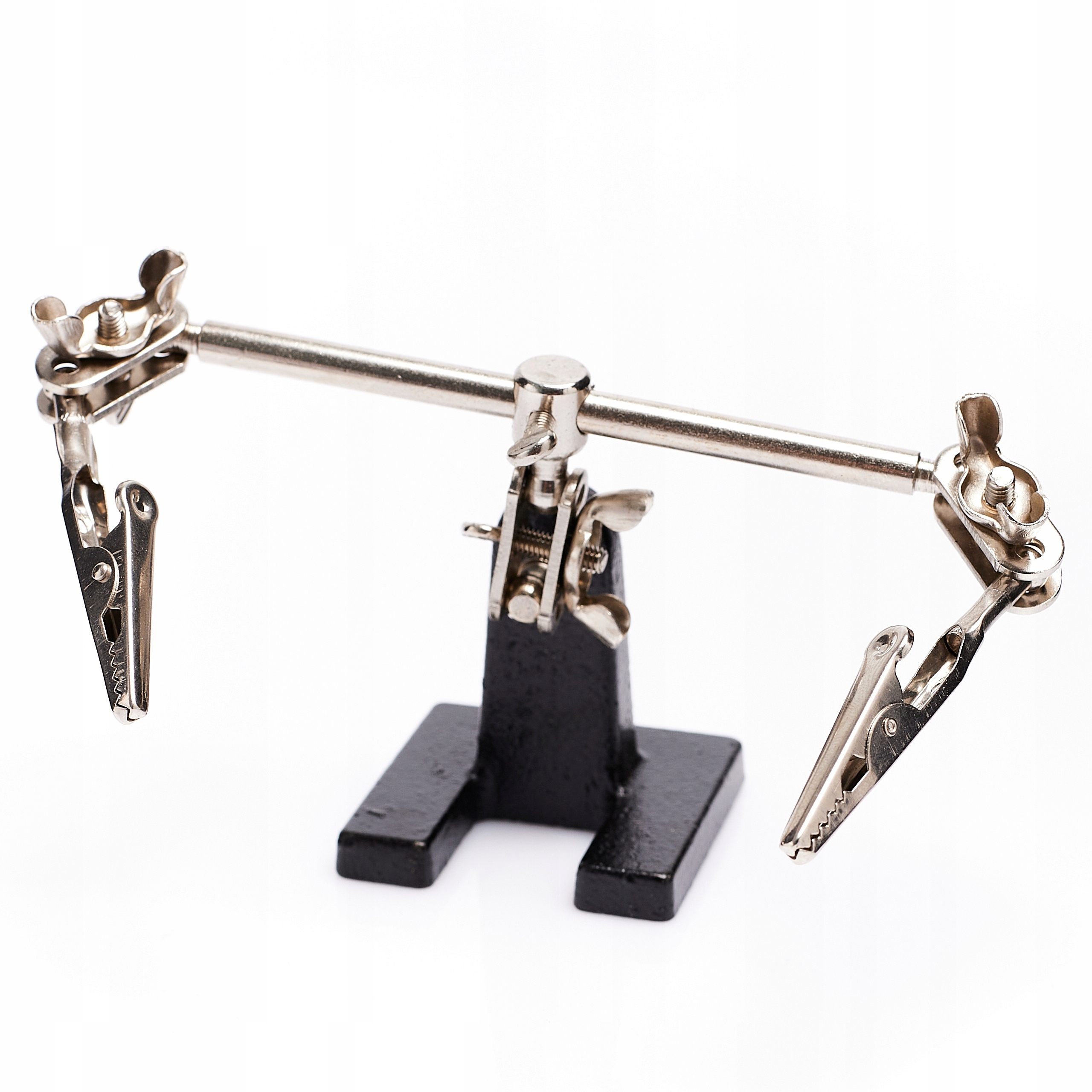 Ідеально підходить для всіх точних робіт, у ювелірних виробах і створенні моделей. Ідеальний інструмент для паяння та там, де не вистачає «третьої руки». Рукоятка оснащена двома затискачами «крокодил», які регулюються під різними кутами та відстанню, третя рука Оснащена чавунною основою, завдяки чому робота стабільна.