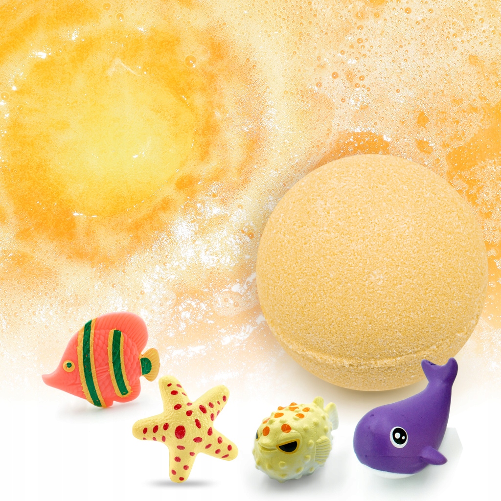 Набір шипучих бомбочок для ваннисонячно-помаранчевого кольору з екзотичним ароматом манго з іграшкою спонукає прийняти ванну навіть самого неохочого негідника!