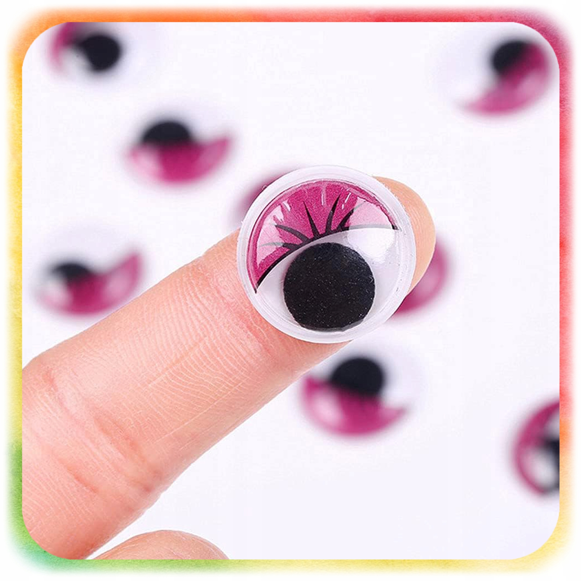 ✔️ Набір включає очі яскравих, інтенсивних кольорів, таких як блакитний, рожевий, зелений, жовтий, червоний, білий і фіолетовий.