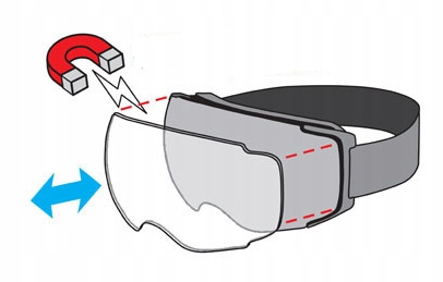 - Система, яка переміщує гуму за межі шолома (окуляри не затискаються)