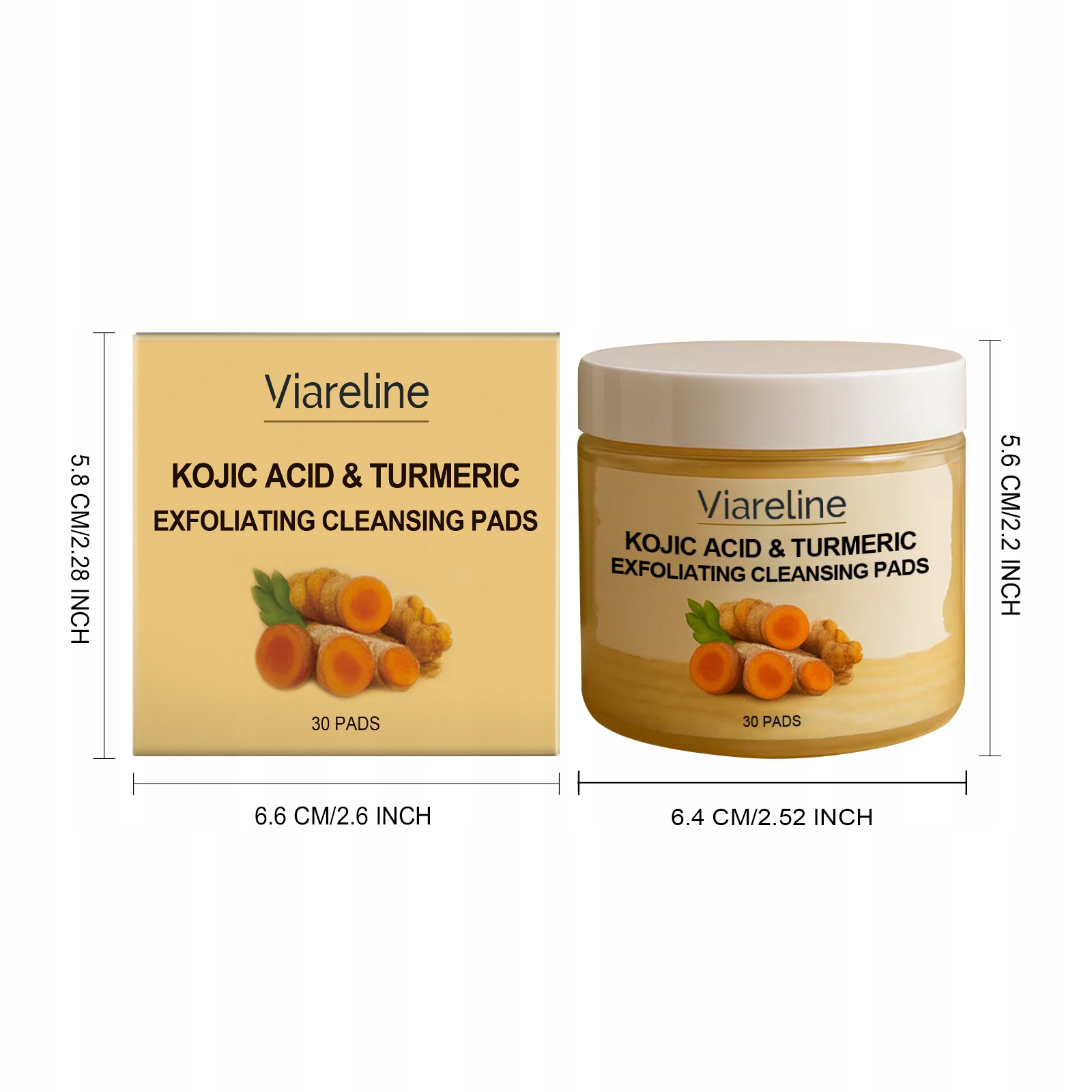 【Очищаючі подушечки подвійної дії】Наші очищувальні подушечки з куркумою та койєвою кислотою одночасно відлущують і заспокоюють. Сторона з мікроволокна зміцнює відмерлі клітини шкіри, а сторона з куркумою заспокоює та живить. Досягніть більш гладкого кольору обличчя та природного сяйва за допомогою цих зручних, чистих подушечок.