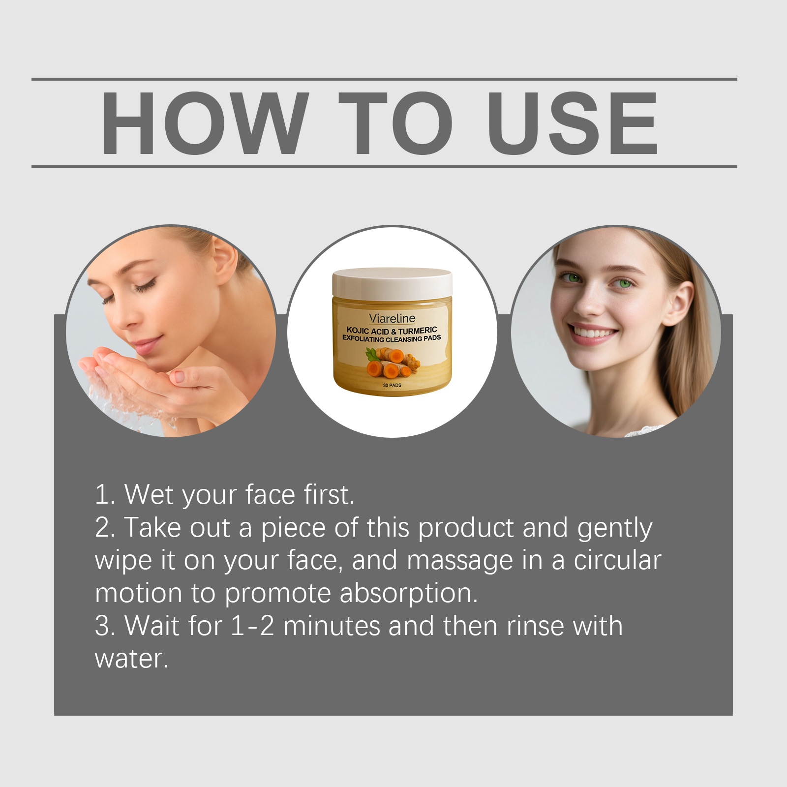 【Глибоко очищає】 Очищувальні подушечки з куркумою містять м’які очищувальні засоби для глибокого очищення пор, видалення бруду та забруднень. олії, залишаючи шкіру оновленою та чистою.
