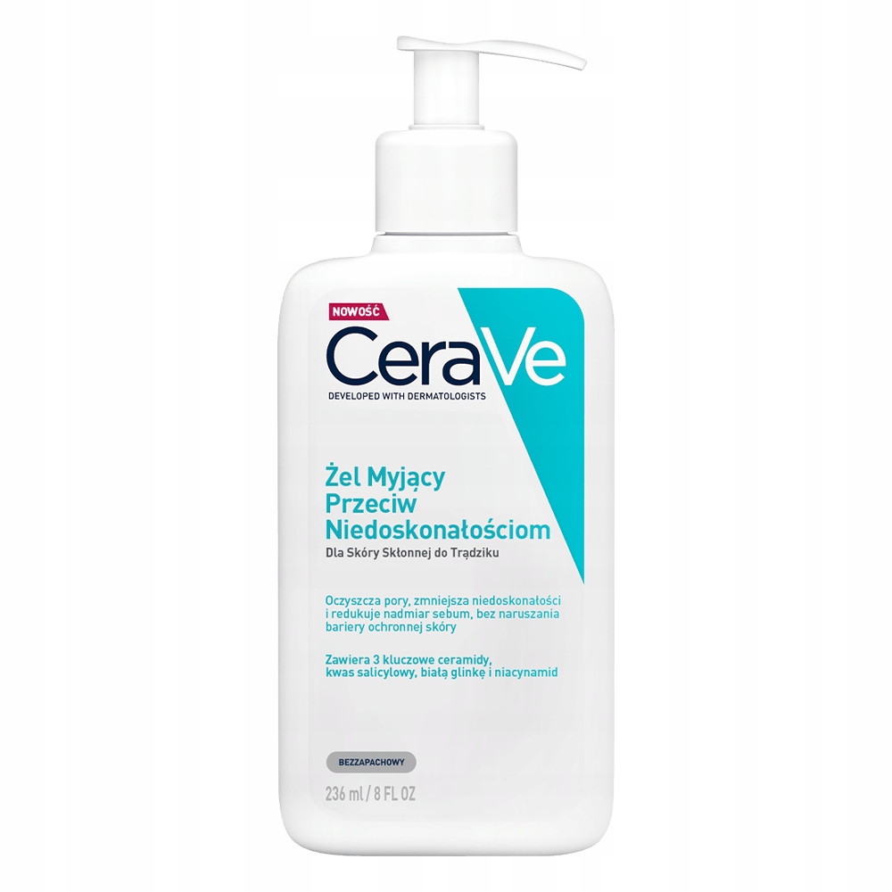 Очищаючий гель проти недоліків CeraVe очищає пори та зменшує недоліки. Містить 3 ключових кераміди, саліцилову кислоту, ніацинамід і білу глину, тобто інгредієнти, які ефективно доглядають за шкірою, схильною до вугрів, запобігають появі блиску, не порушуючи при цьому природний захисний бар’єр епідермісу. Формула не містить ароматизаторів і не викликає комедонов.