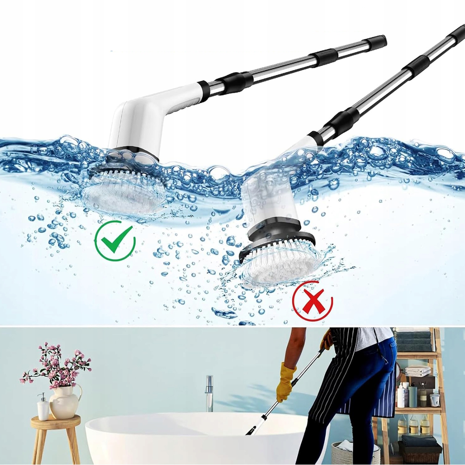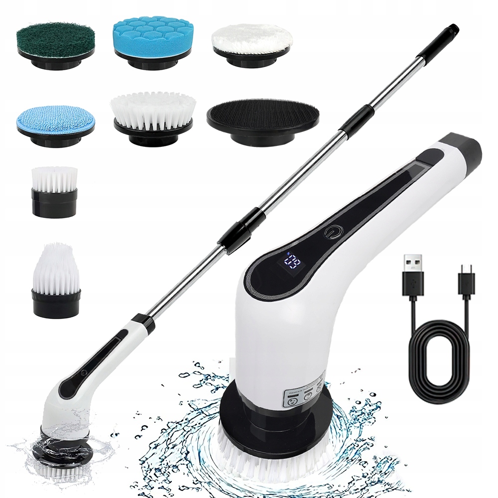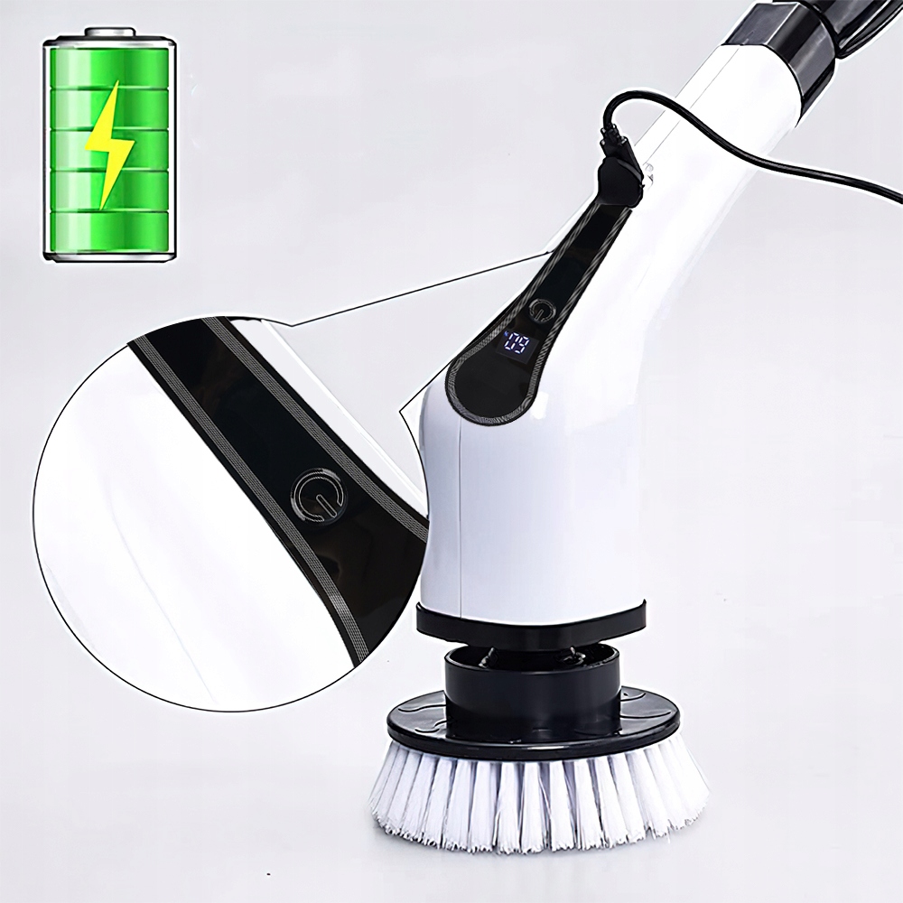🌟 Електрична скрубер з електропроводкою, бездротова ванна з 7 взаємозамінними головками пензля, щіткою для очищення душу з регульованою ручкою для ванної, підлоги та автомобілем, білим 🌟