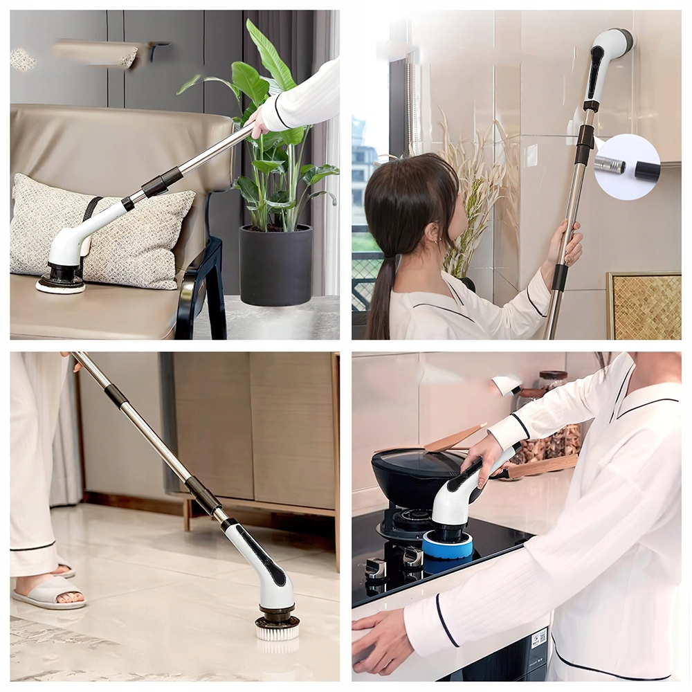 Наша бездротова кисть для чищення поворотів пропонує 7 багатофункціональних замінних головки пензлів для різних сценаріїв. Наприклад, очищення вбудованих ділянок, таких як ванни та раковини, прибирання кутів, щілини та інші тісні, тверді -дорічні місця, а також прибиральні підлоги, скло, стіни, вистелені плитками, кухонними поверхнями, такі як машини, колеса, автомобільні сидіння, меблі та печива тощо