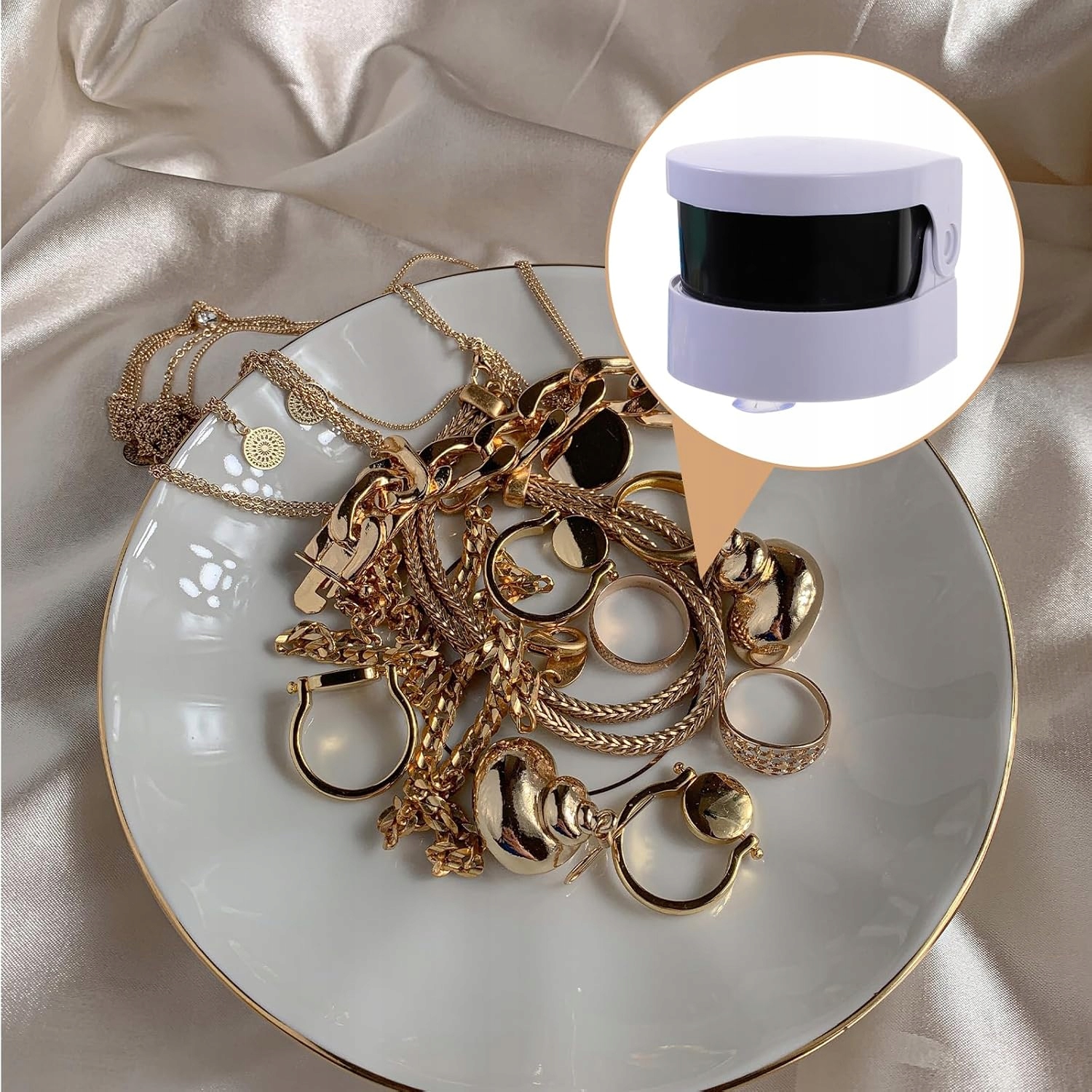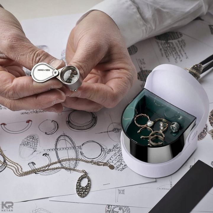 живлення від акумулятора очищувача для зубних протезів. Мацина використовують звукові вібрації (звукові рухи) для видалення домішок, плям, нальоту та харчових залишків із зубних протезів. шайба може бути використана для всіх типів протезів.