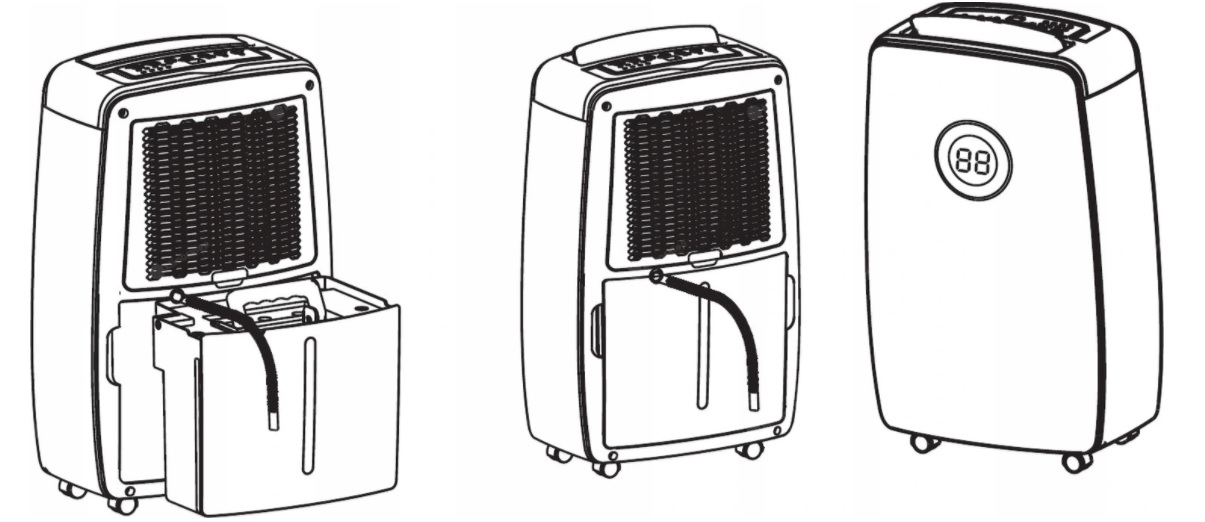 Два світлодіодні дисплеї, розташовані на панель керування та передня стінка пристрою, представлена, серед іншого, рівень вологості, а також функції автоматичного розморожування та відключення у разі переповнення бака дозволяють постійно контролювати осушувач і безпечно його працювати.