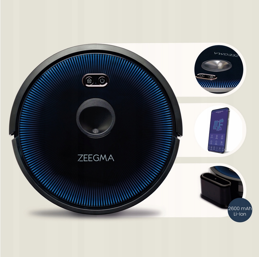 Zeegma Zonder Robo Vision пропонує 3 режими всмоктування з 1800 до 2600 pa , що означає, що він може впоратися з будь -яким типом бруду на ваших підлогах, включаючи волосся домашніх тварин або пил на килимах та килимах.
