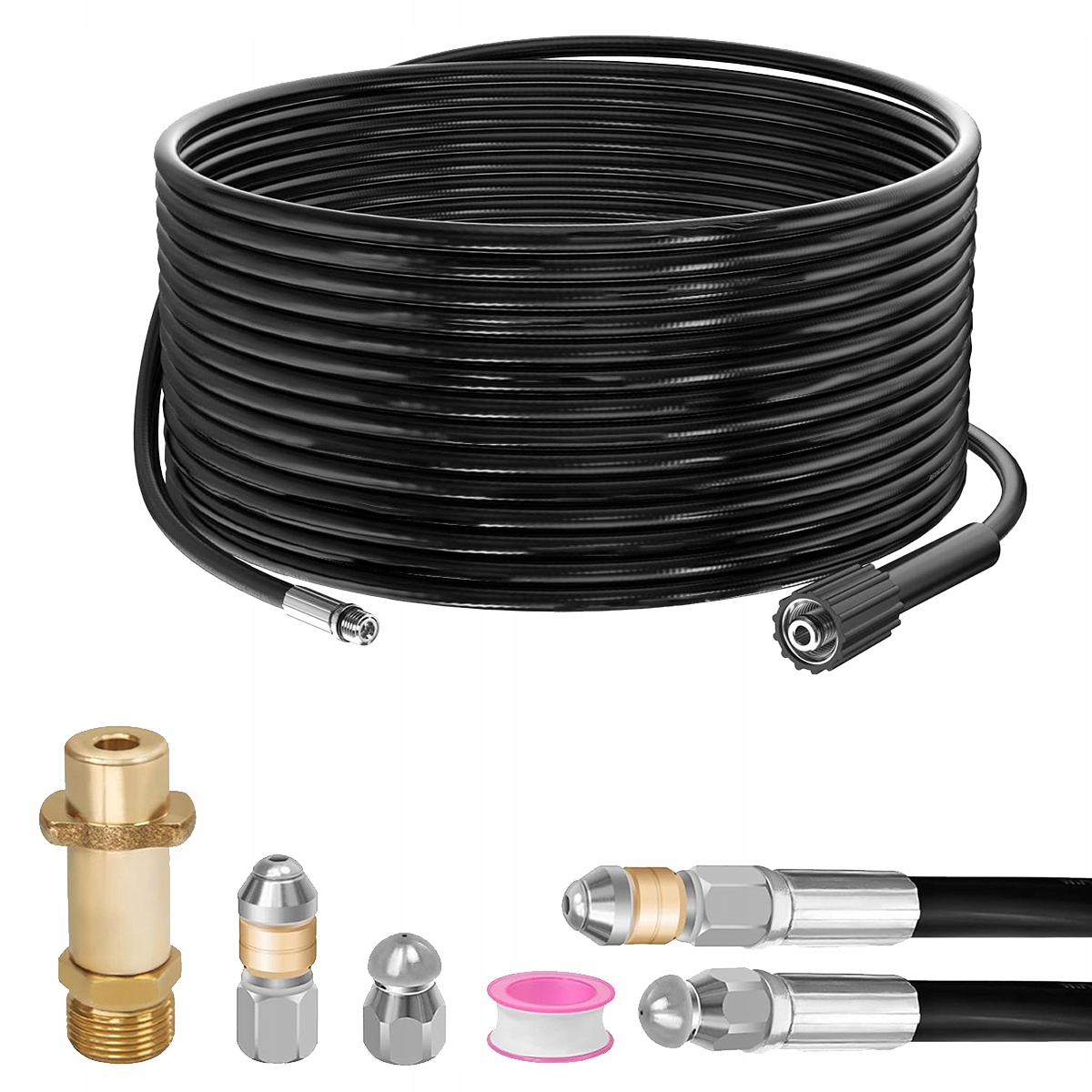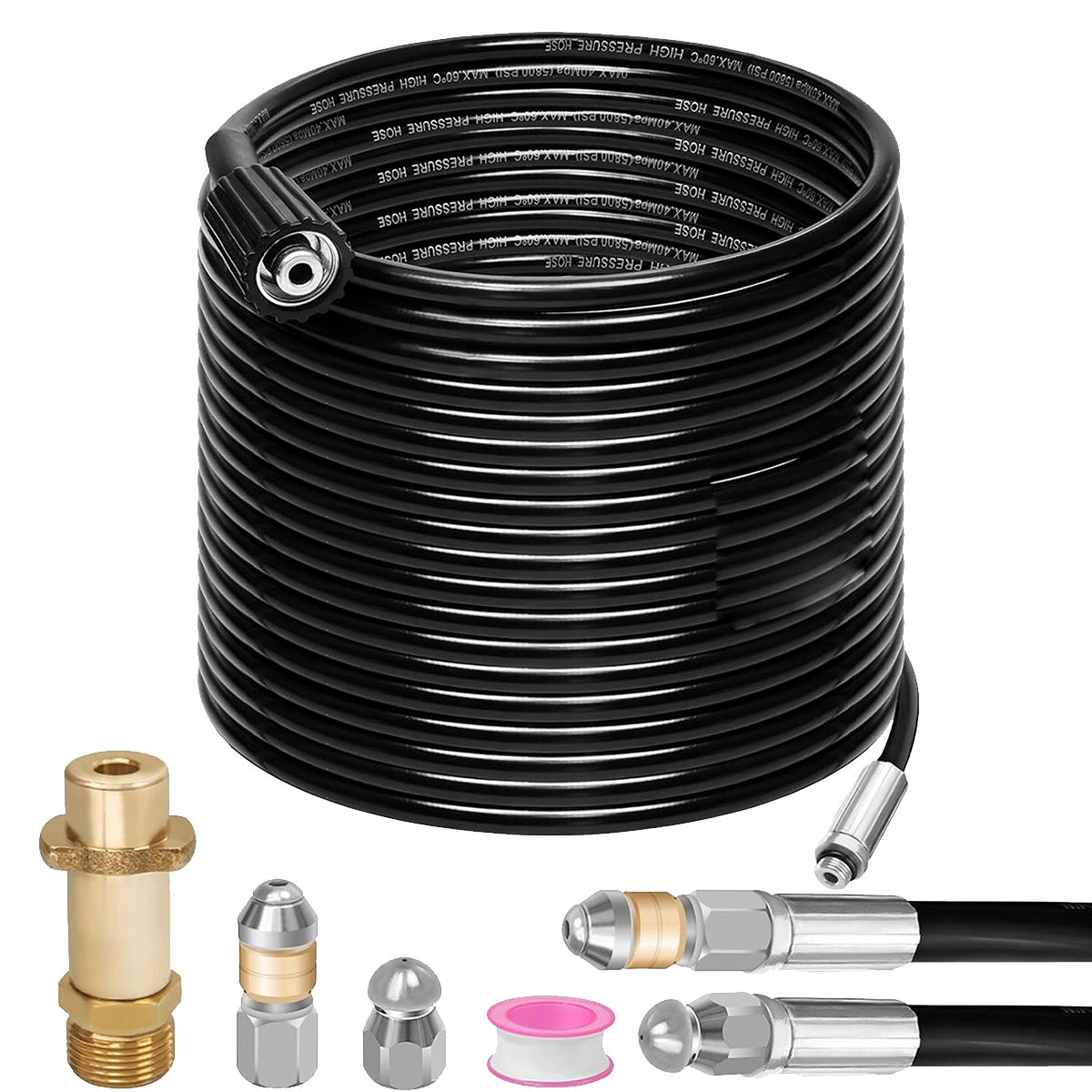 Набір шлангів для очищення труб 15 м, 400 бар, включаючи адаптер M22, фіксовані + обертові насадки для мийки високого тиску Kärcher K2, K3, K4, K5, K6, K7, універсальний набір для очищення труб, шланг високого тиску (чорний)